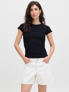 Ce t-shirt basique est un essentiel de la garde-robe qui se marie bien avec un jean, un short et un pantalon. Le tricot côtelé a des crêtes verticales et est très extensible pour une sensation de confort. - Type d'article : Top - Col : Col rond - Manches : Manches courtes - Coupe : Stretch Fit