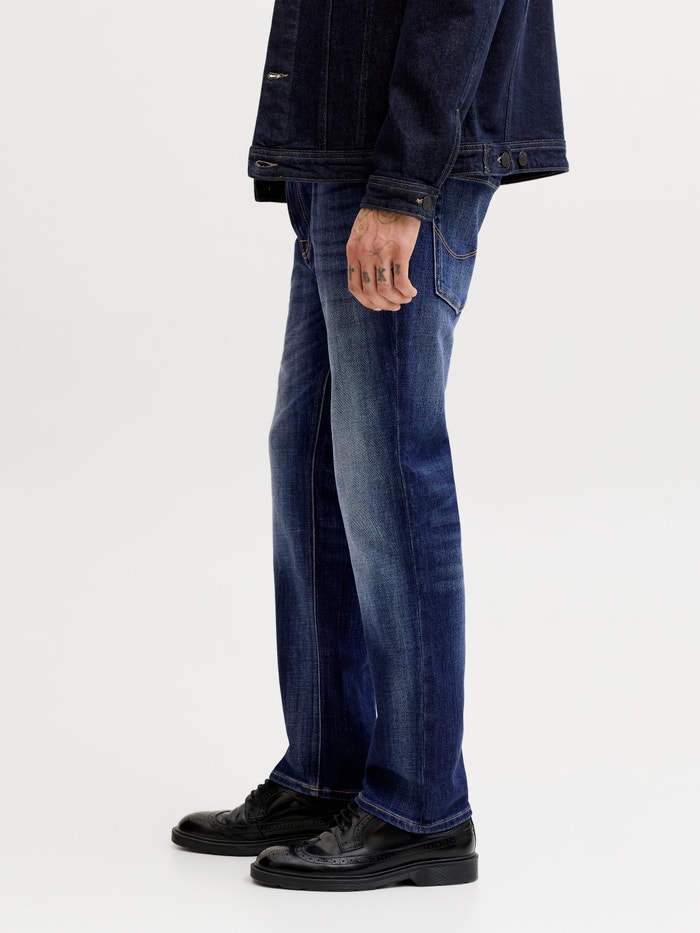 - Coupe : Jeans de coupe régulière avec une taille régulière, une cuisse régulière, un genou régulier, une ouverture de jambe régulière