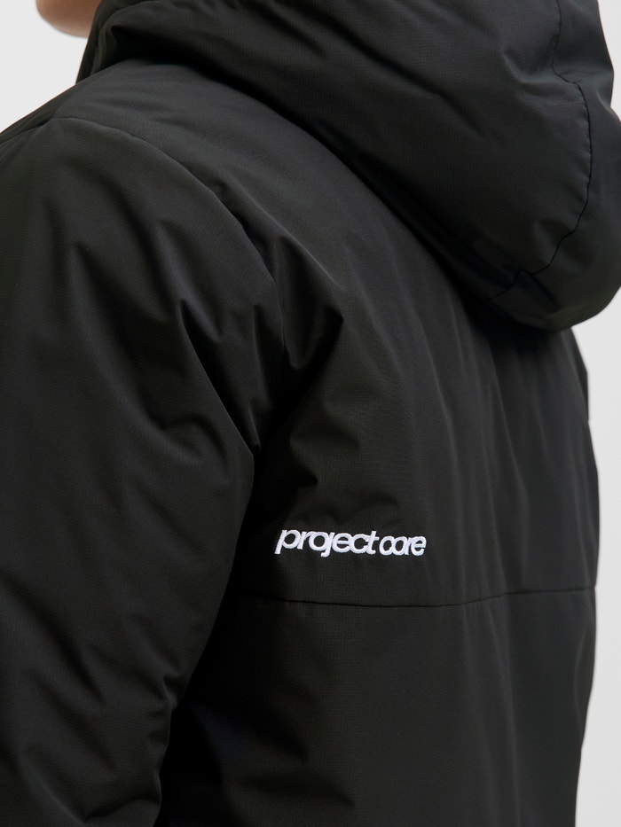 - Superposition: 100% Nylon; Doublure: 100% Polyester recyclé; Rembourrage: 100% Polyester; Manches: 100% Nylon; Côtelé: 100% Nylon