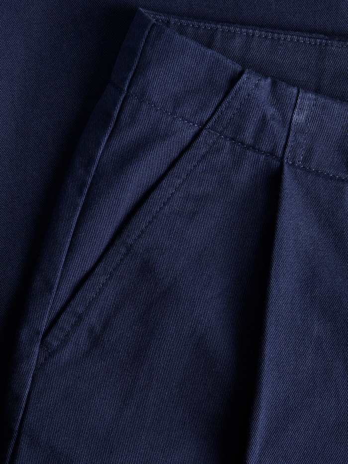 Le sergé est un tissu tissé durable caractérisé par son motif « V » ou « W » signature qui crée un look classique.