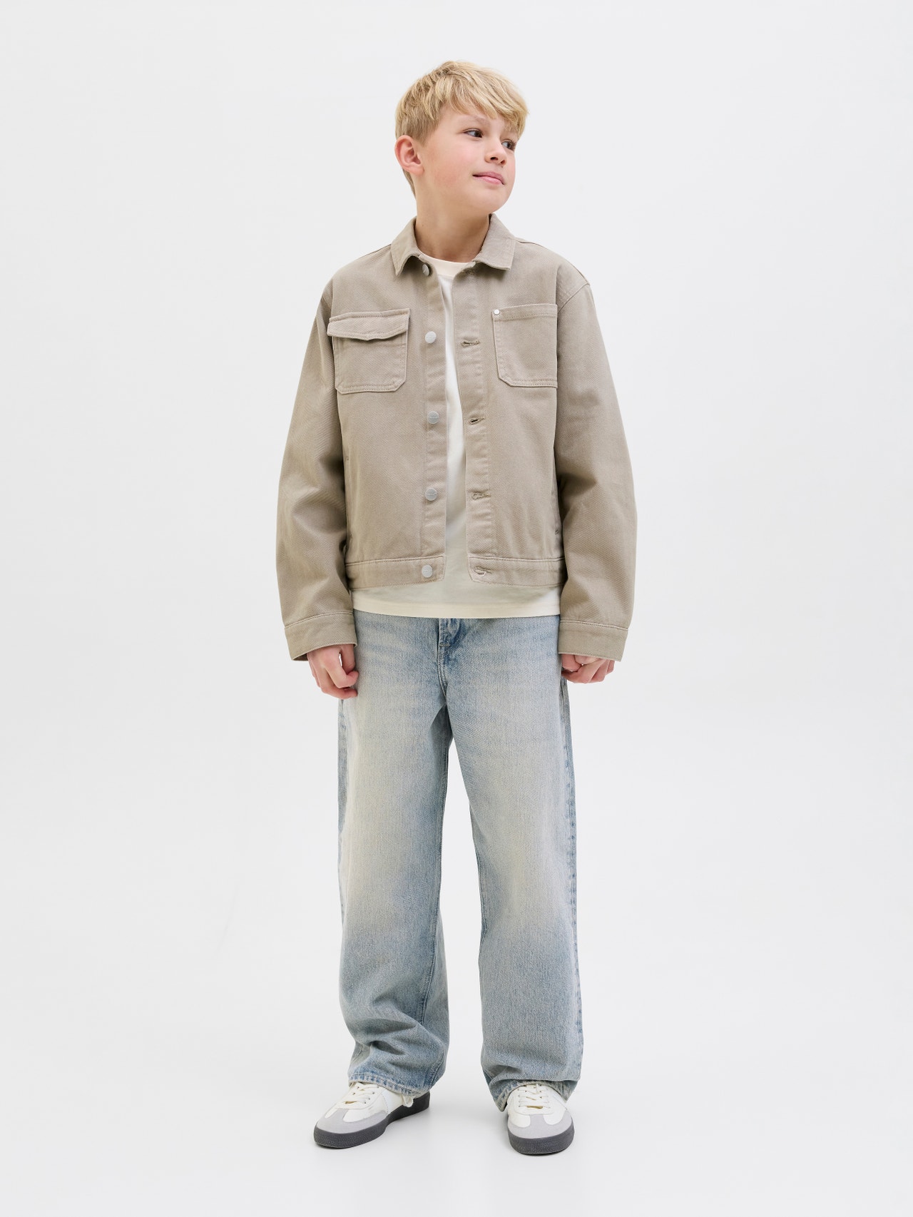 Original est le détail classique des cinq poches. Intemporel, simple et comme il l'a été depuis le tout début. C'est ce qui en fait un produit sur lequel on peut toujours compter, comme tout bon jean. Le denim est un tissu sergé résistant caractérisé par une chaîne de fils teinte et une trame écrue qui sont tissés ensemble. Découvrez l'univers cool de Jack and Jones Junior, où la mode prend vie avec une énergie juvénile et un charme dynamique. Nos collections sont constituées de modèles cool à la pointe de la tendance, spécialement conçus pour les garçons de 3 à 16 ans. Plongez dans un monde où le confort et la qualité se rencontrent pour donner vie à des pièces qui mettent en valeur la mode garçon. Coupes décontractées à l'allure contemporaine, Jack and Jones Junior redéfinit la mode pour les 3 à 16 ans en insufflant un soupçon de maturité dans chaque tenue.. - Type d'article : Jean baggy fit - Fermeture : Braguette zippée - Poches : Poches arrière, Poche pour la petite monnaie, Poches avant - Taille : Taille haute - Lavage/finition : Délavage clair pour un look usé et vieilli - Coupe : Jean ample avec taille haute, cuisse ample, genou large, ouverture de jambe ample