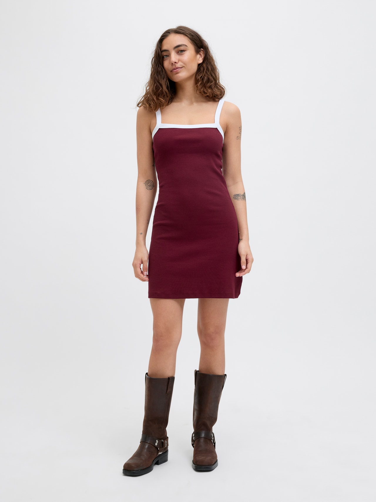 A bordázott kötéssel készült anyag függőleges barázdákkal rendelkezik, rugalmas és kényelmes viselet.