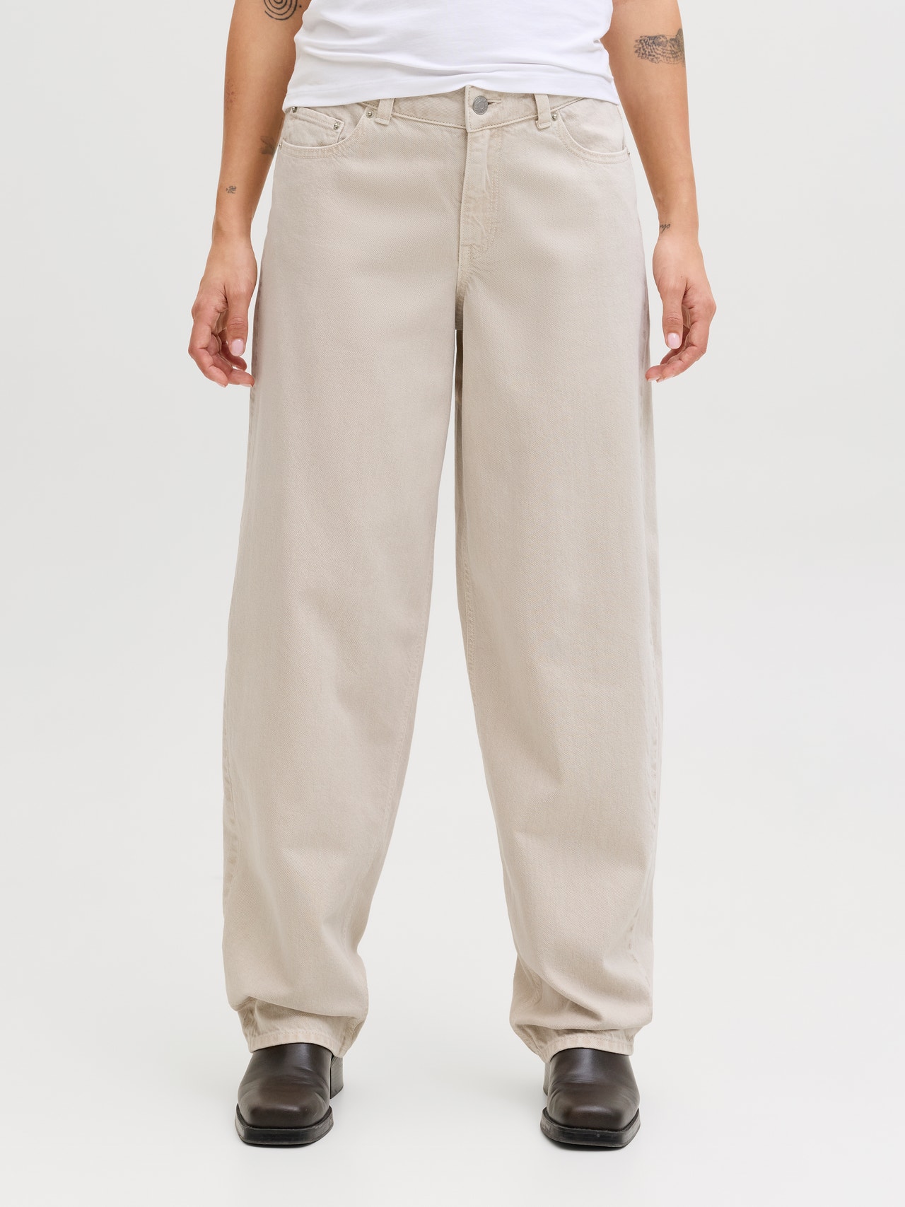 - Forma : Középső derék, laza szabású, laza szár
