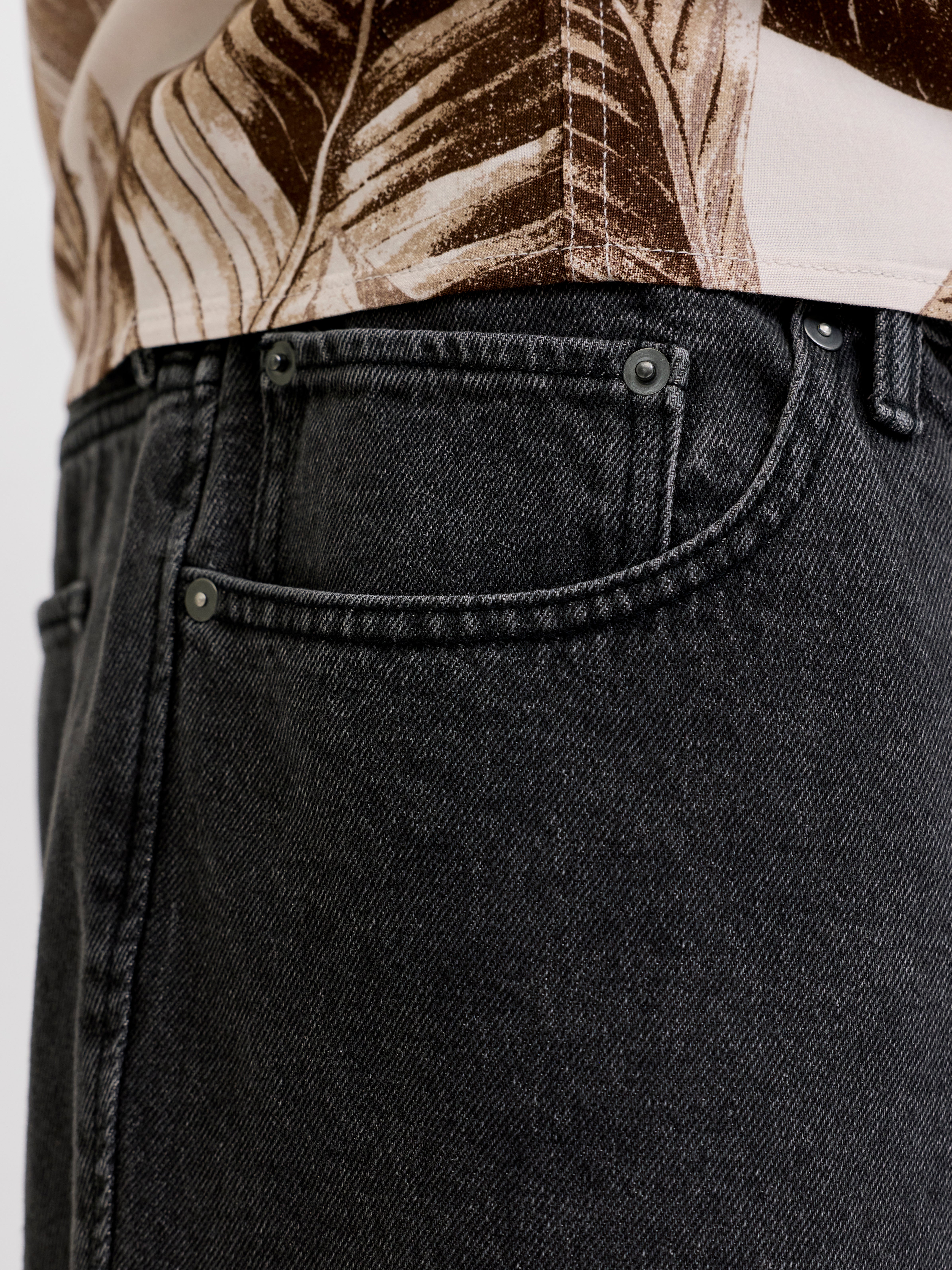 A merev farmeranyag 100%-ban pamutból, streccs hozzáadása nélkül készül. Ez a hagyományos farmeralapanyag, amely klasszikus megjelenést és érzést biztosít.
