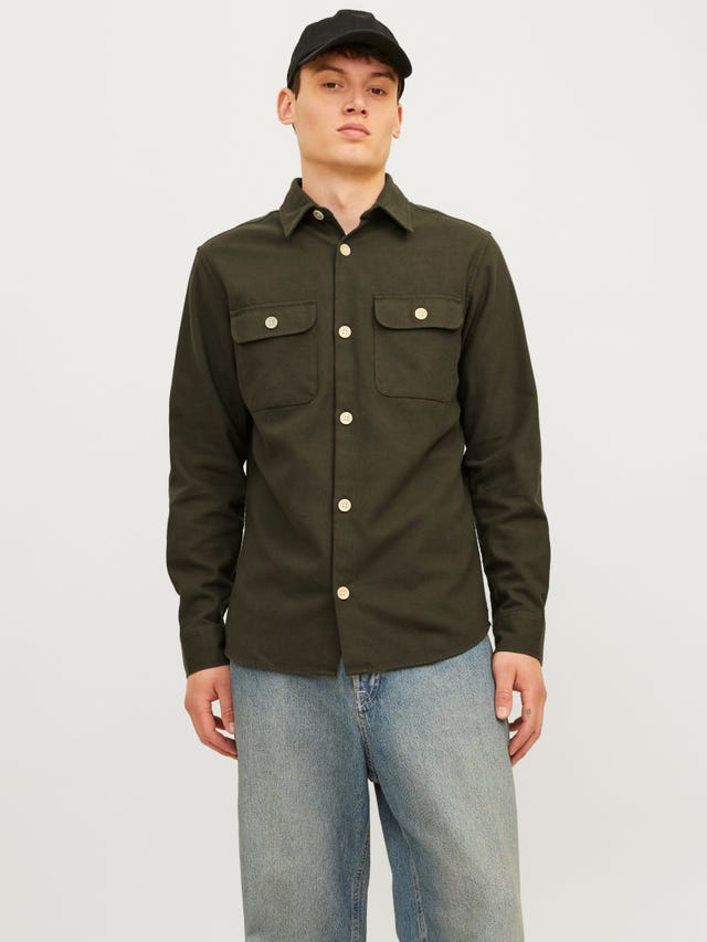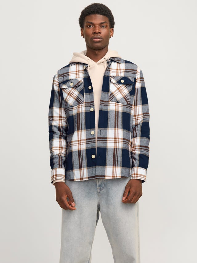 find both, button down or zipped overshirts that will fit perfectly with a plain t-shirt, and slim fit jeans. Try out different styles: checkered, corduroy, denim, or go for a simple black and gray overshirt. At JACK & JONES online shop, we have it all!