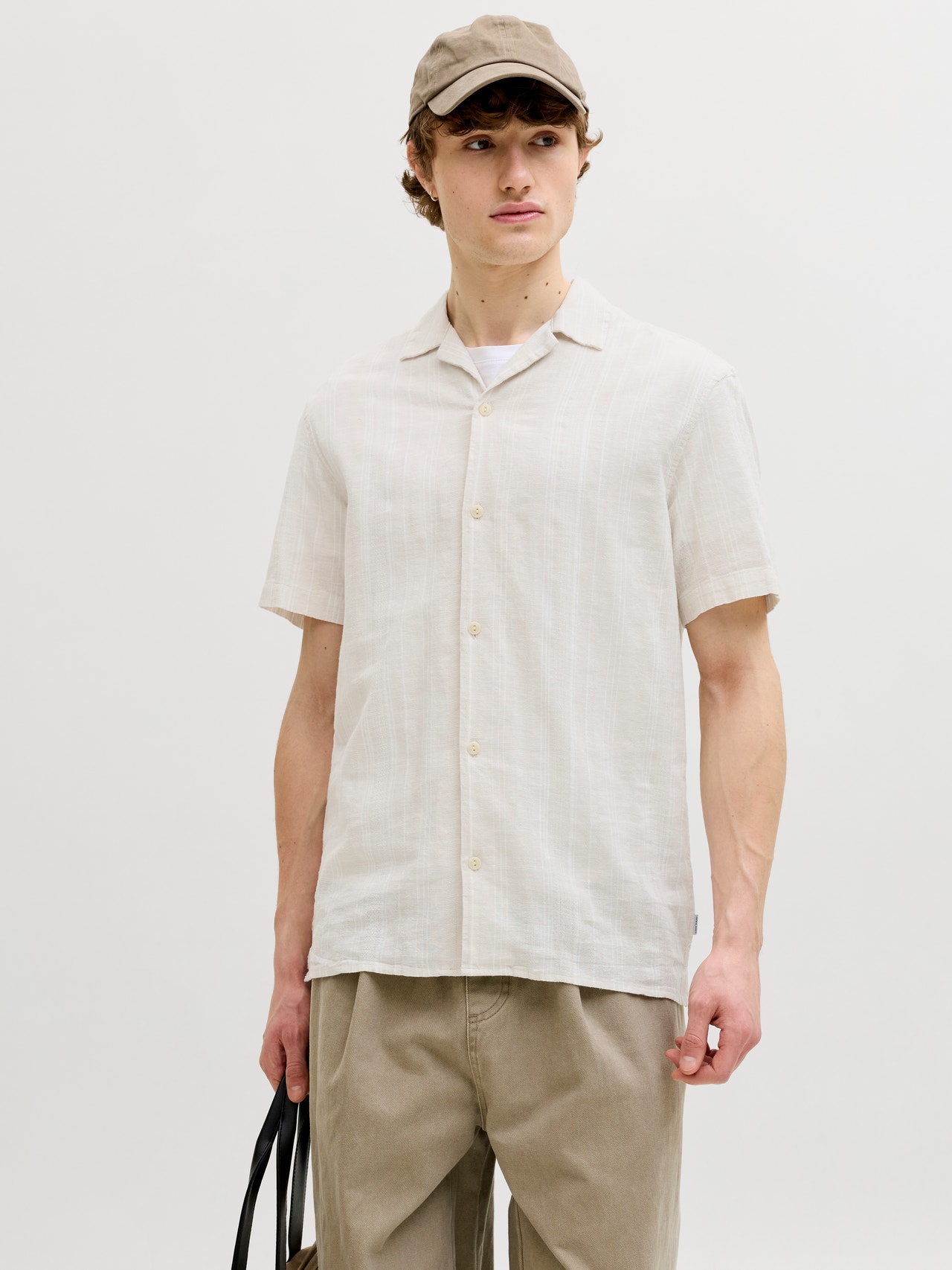 Il tessuto dobby presenta piccoli motivi geometrici che aggiungono consistenza, per un look raffinato.
