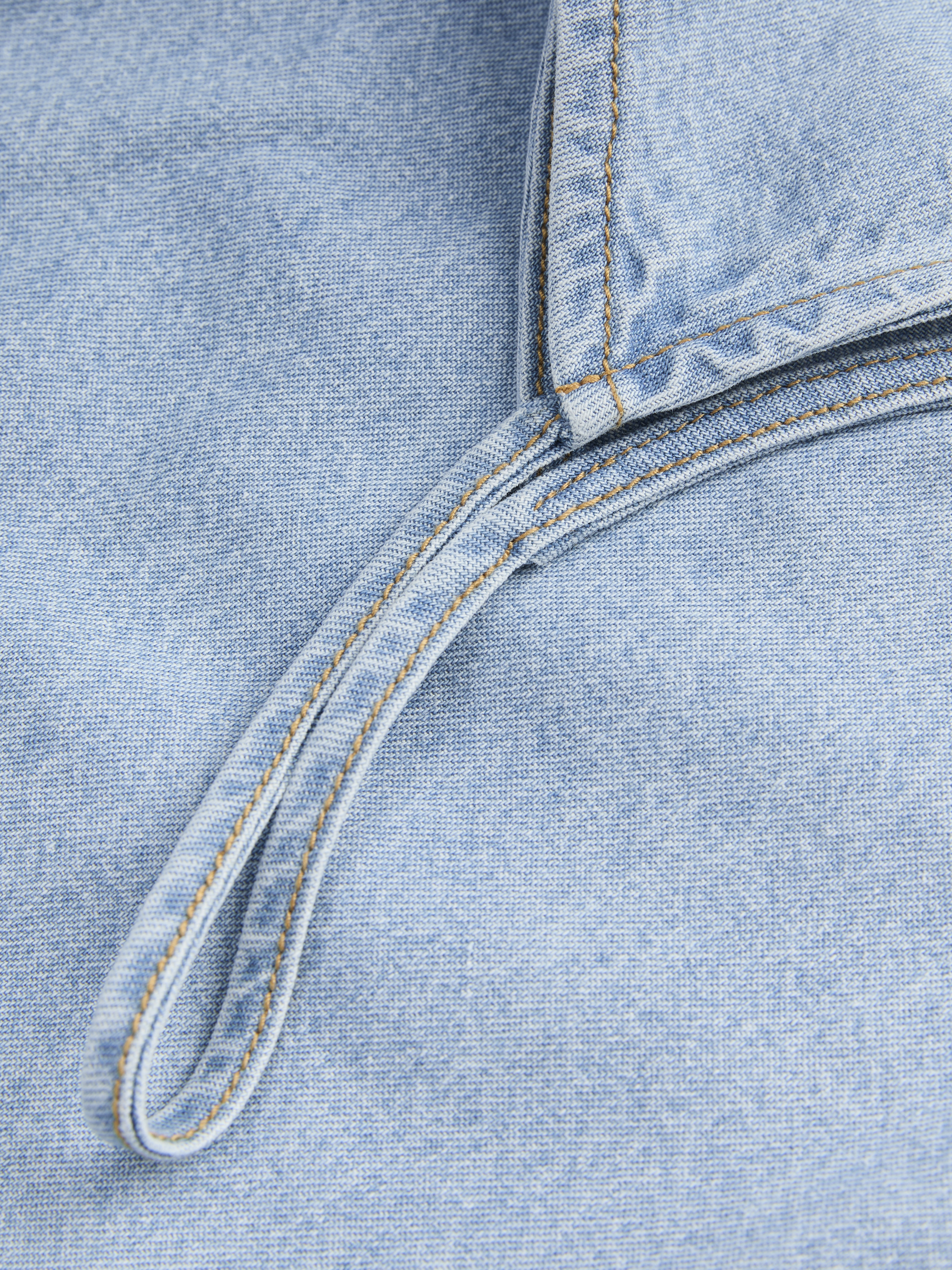 Il denim è un tessuto twill resistente caratterizzato da un filo di ordito e trama tinti che si intrecciano insieme.