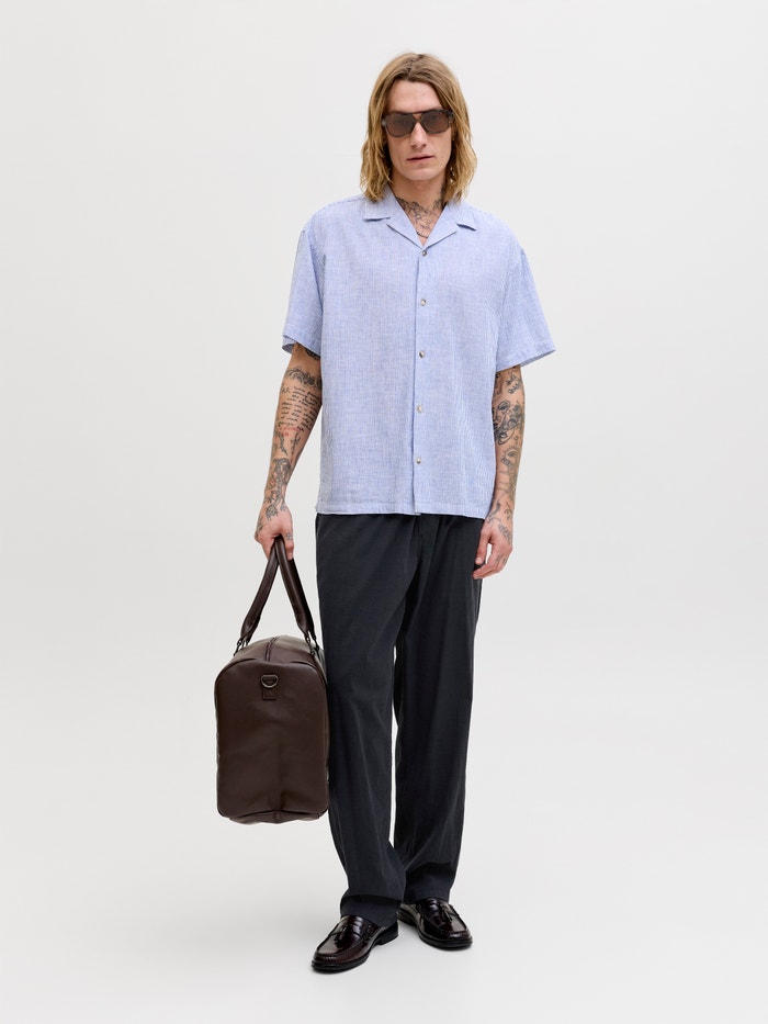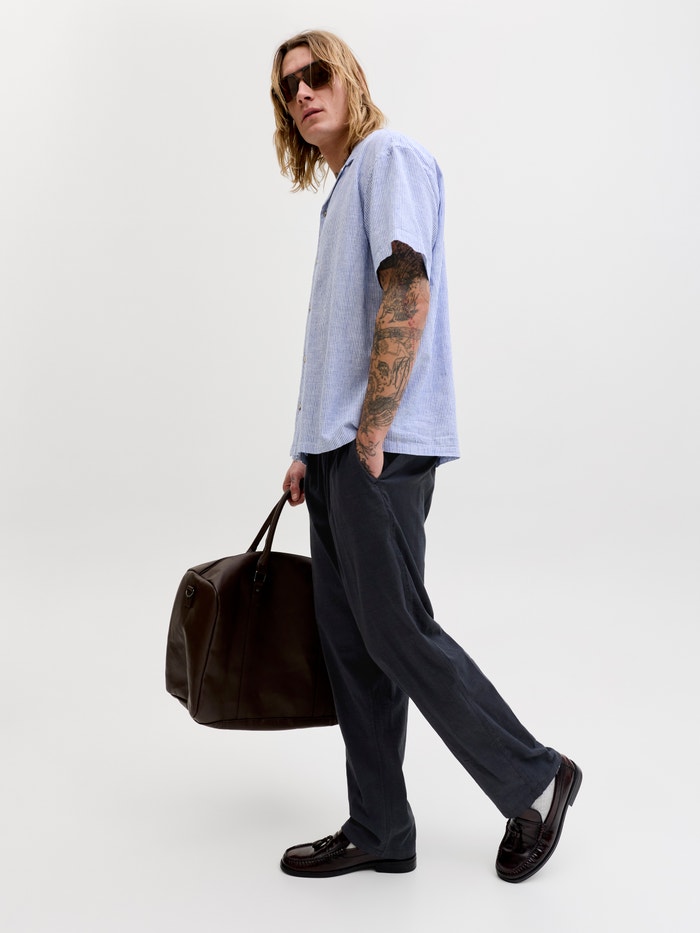 - 83% Medvilnė, 15% Linas, 2% Elastanas
