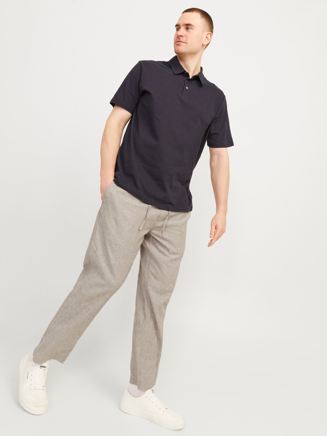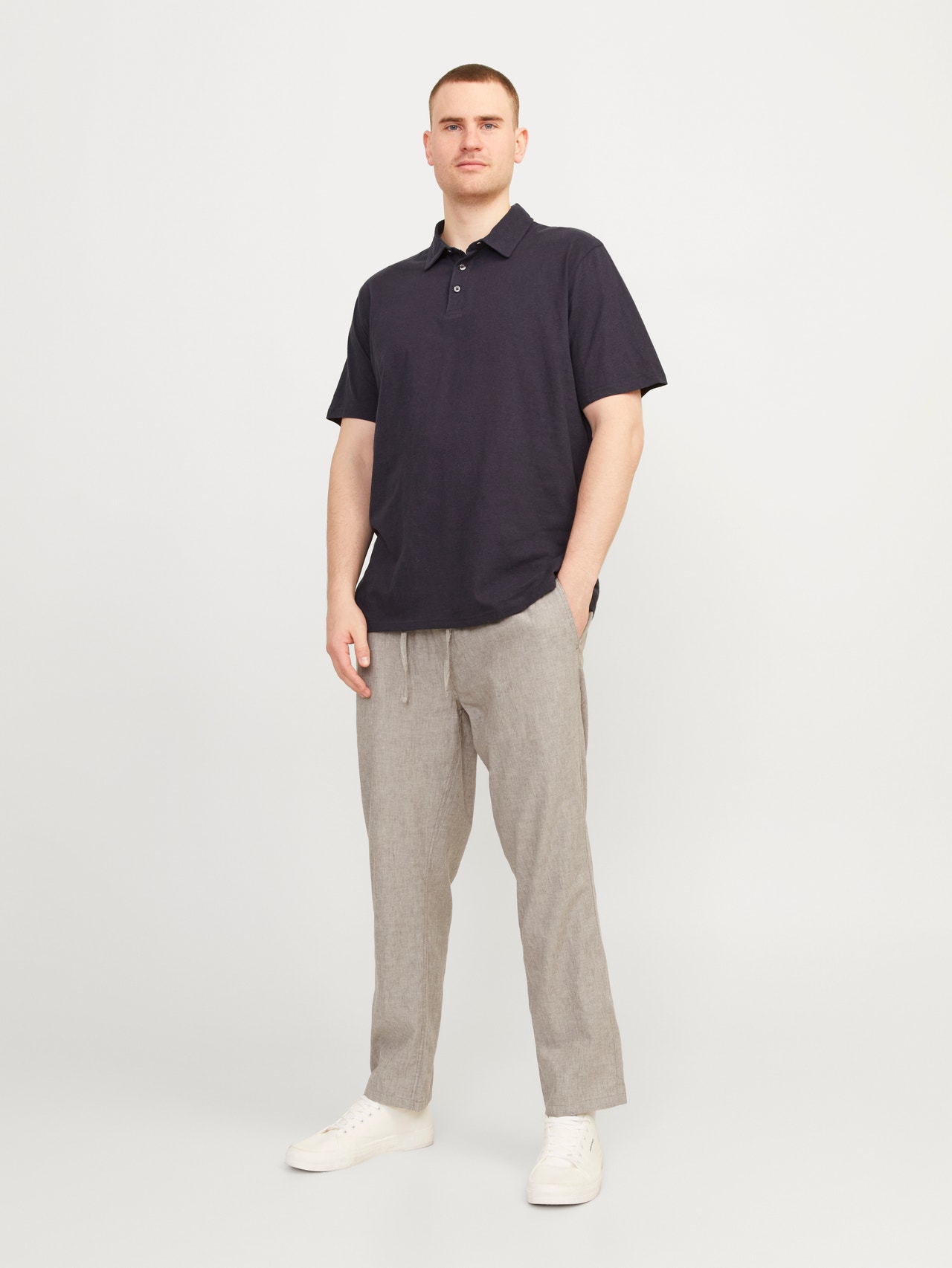 - 81% Medvilnė, 15% Linas, 4% Elastanas