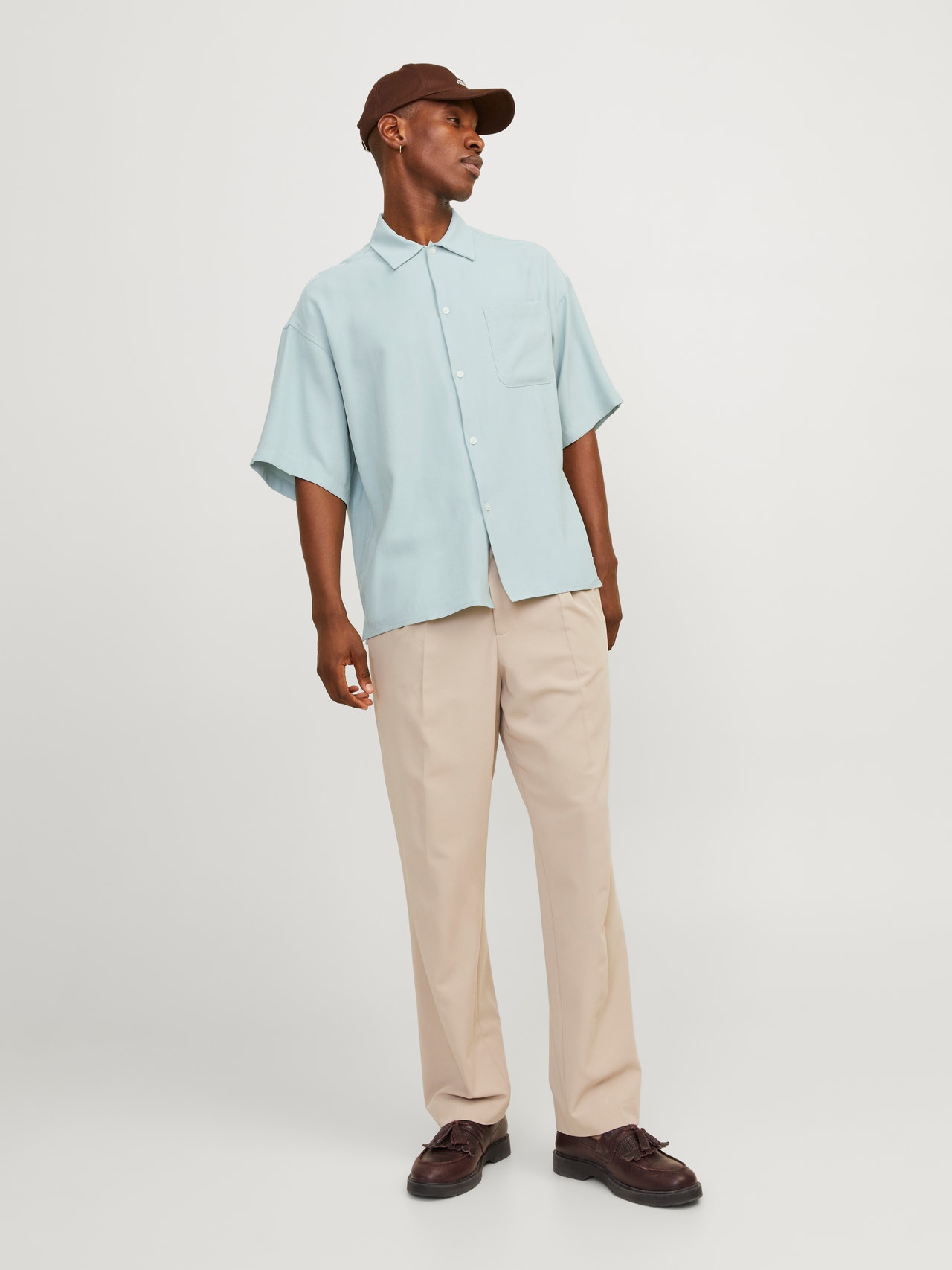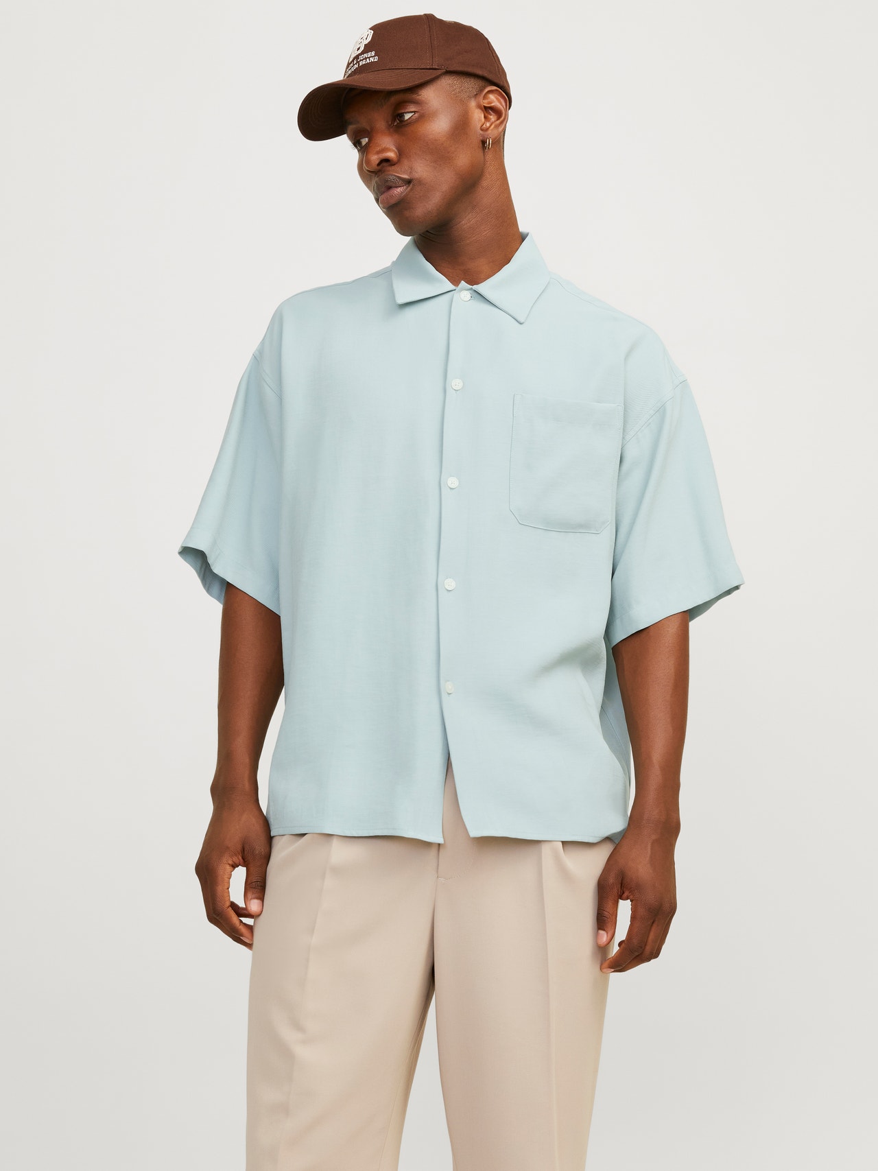 Atnaujinkite savo pagrindinį garderobą nesenstančiais kokybiškais marškiniais, puikiai tinkančiais kasdieniam dėvėjimui. Ruoželinis audinys yra patvarus audinys, kuriam būdingas „V“ arba „W“ raštas, sukuriantis klasikinę išvaizdą. - Produkto tipas : Marškiniai - Kaklas : Marškininė apykaklė - Rankovė : Trumpos rankovės - Užsegimas : Užsegimas sagomis - Tinkamas : Platus kirpimas