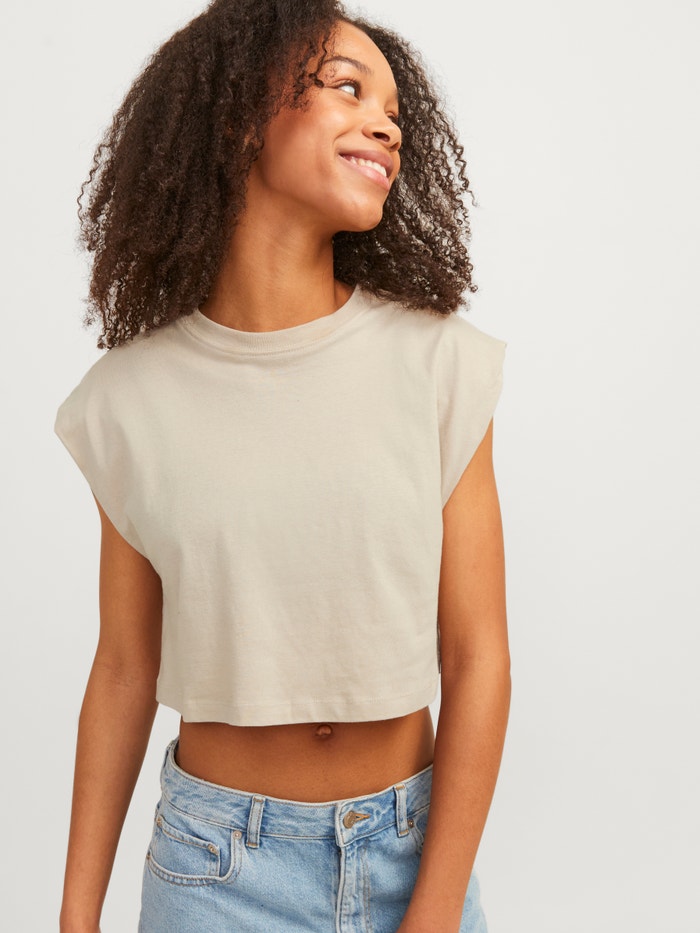 Šie pagrindiniai marškinėliai yra būtini drabužių spinta, puikiai tinkanti prie džinsų, šortų ir kelnių.