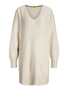 Kai aprangos kodas reikalauja paaukštintos aprangos, pasiimkite ją į įpjovą su oficialia apranga. Plokščias mezginys yra megztas audinys, pasižymintis komfortu ir lankstumu. - Produkto tipas : Megzta suknelė - Kaklas : V formos apykaklė - Rankovė : Ilgos rankovės - Ilgis/dydis : Iki kelių - Tinkamas : Laisvas kirpimas