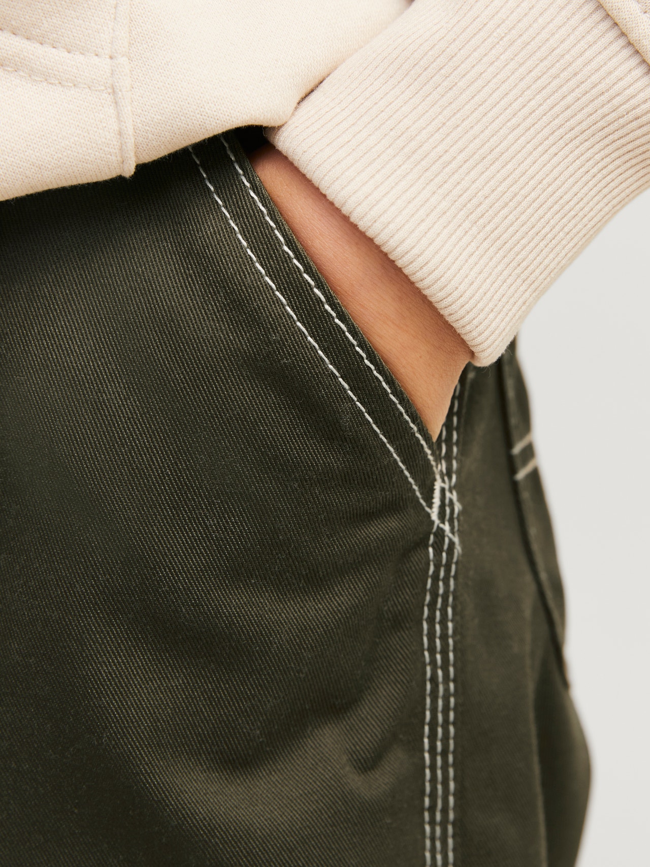 Sukurkite švarų, šiuolaikišką įvaizdį su patogiomis kelnėmis ir demonstruokite funkcionalias detales bei šaunią darbo atmosferą, derindami jas su megztiniu ir sportiniais bateliais arba švarku ir auinukais.