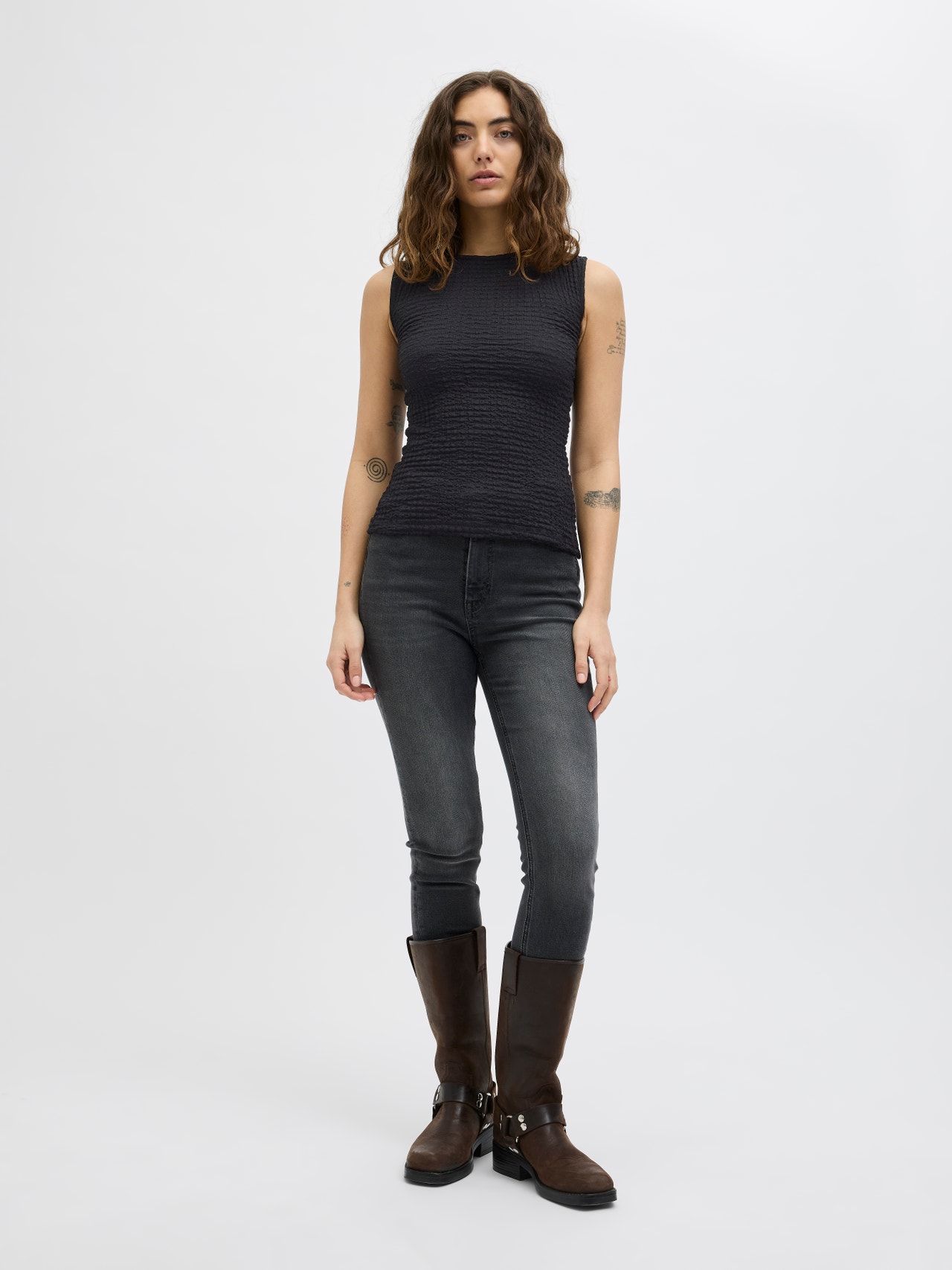Mūsų modelio ūgis yra 168 cm, dėvi dydį M