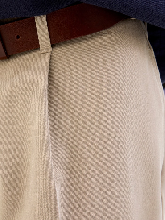 Padidinkite savo garderobą su chino kelnių pora. Šis nesenstantis kuokštas yra protinga laisvalaikio alternatyva džinsams.