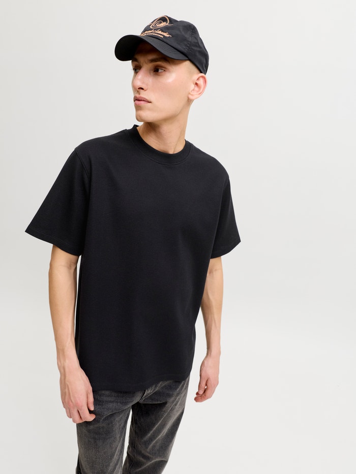 Šie pagrindiniai marškinėliai yra būtini drabužių spinta, puikiai tinkanti prie džinsų, šortų ir kelnių.