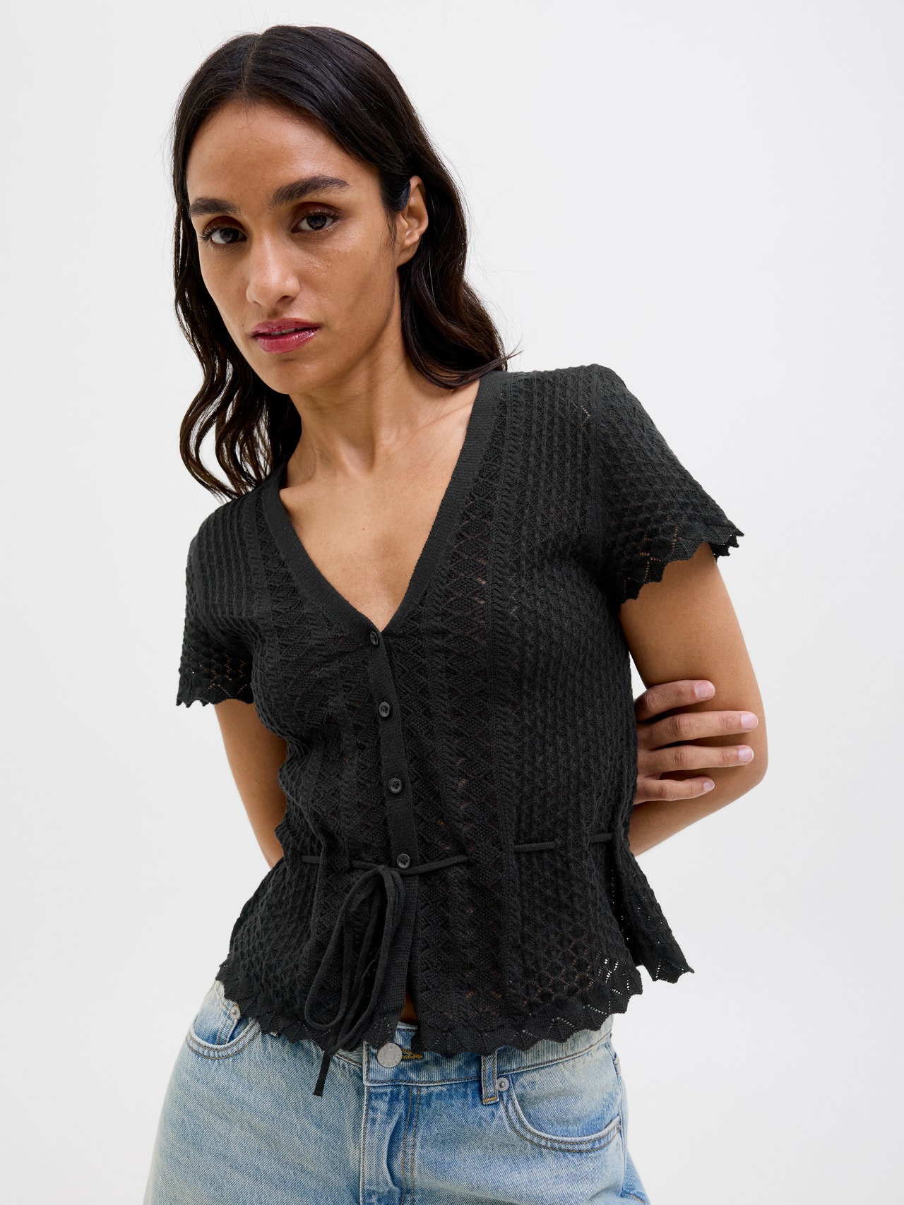 Struktūruotas mezginys pagamintas iš nedidelės tekstūros, kad atrodytų išskirtinai.