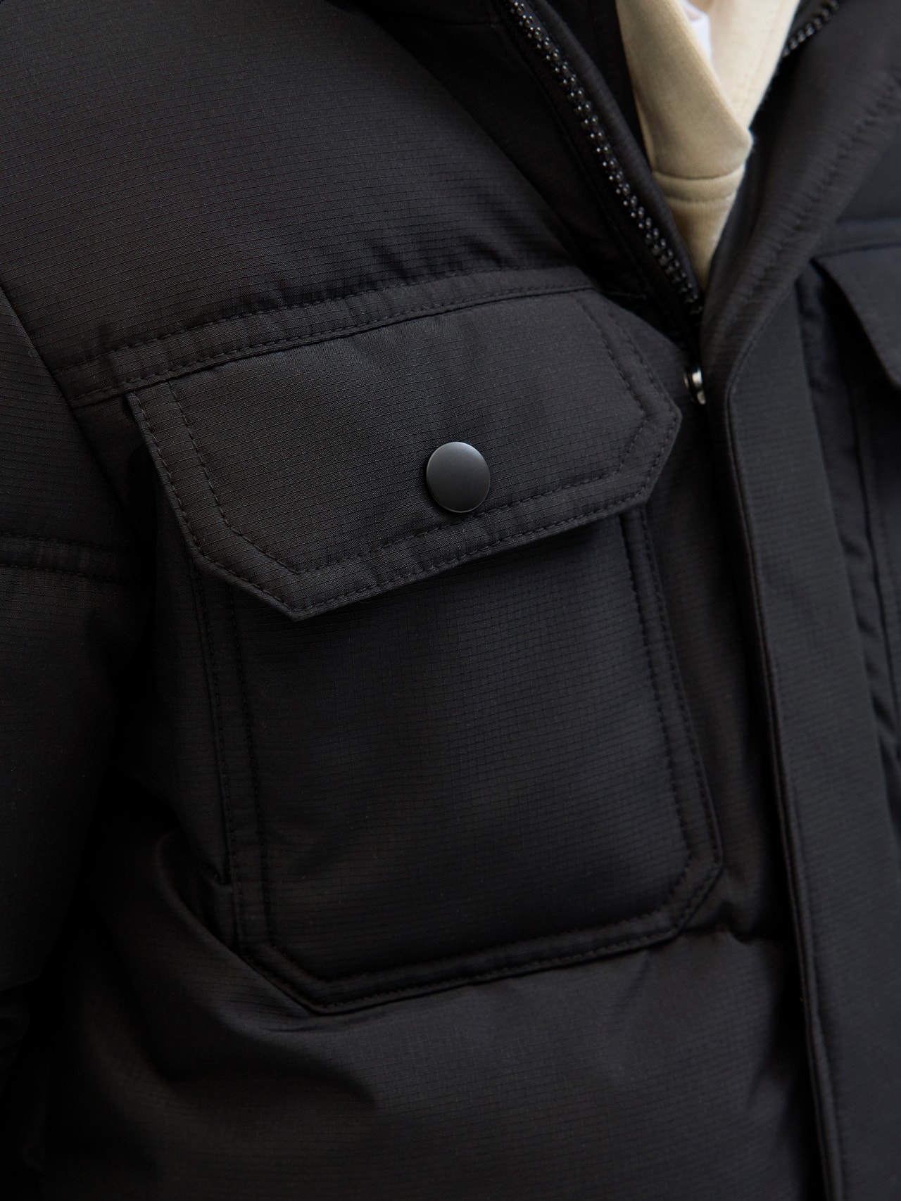 Pasiruoškite naujam sezonui su šia lengva striuke, puikiai tinkančia ryškiai pavasario dienai. Austinis audinys yra tvirta ir patvari medžiaga, kuri nesitampo kaip megzti audiniai. - Produkto tipas : Pūkinė striukė - Kaklas : Gobtuvas - Rankovė : Ilgos rankovės - Užsegimas : Užsegimas užtrauktuku - Pamušalas : Perdirbto poliesterio pamušalas patogumo pojūčiui