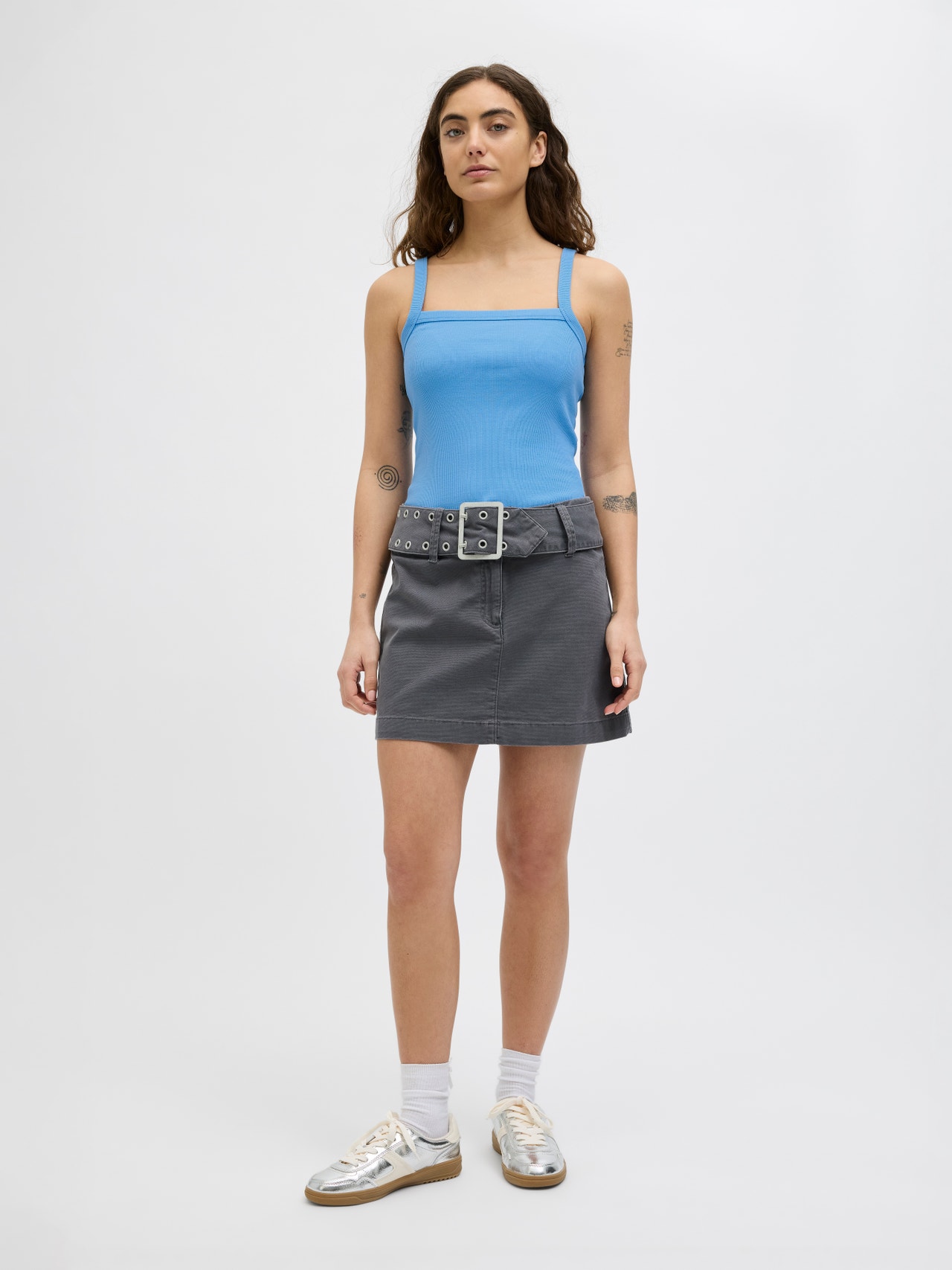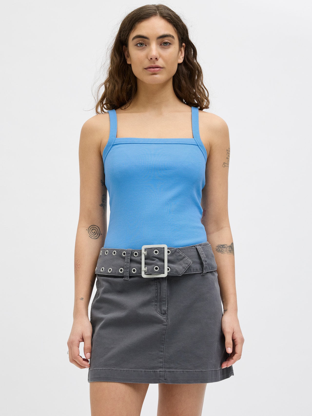 This basic T-shirt is a wardrobe essential that works well with jeans, shorts, and trousers. Rib knit has vertical ridges and is very stretchy for a comfortable feel. - Product Type : Top - Neck : Square neck - Sleeve : Sleeveless - Fit : Standard Fit
