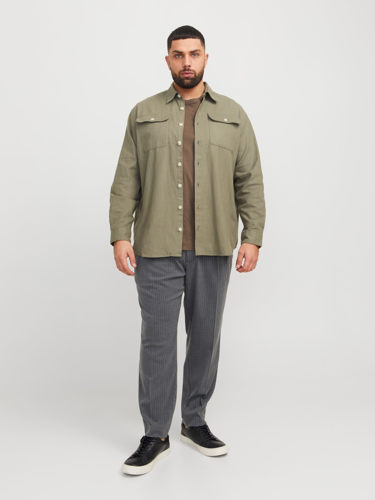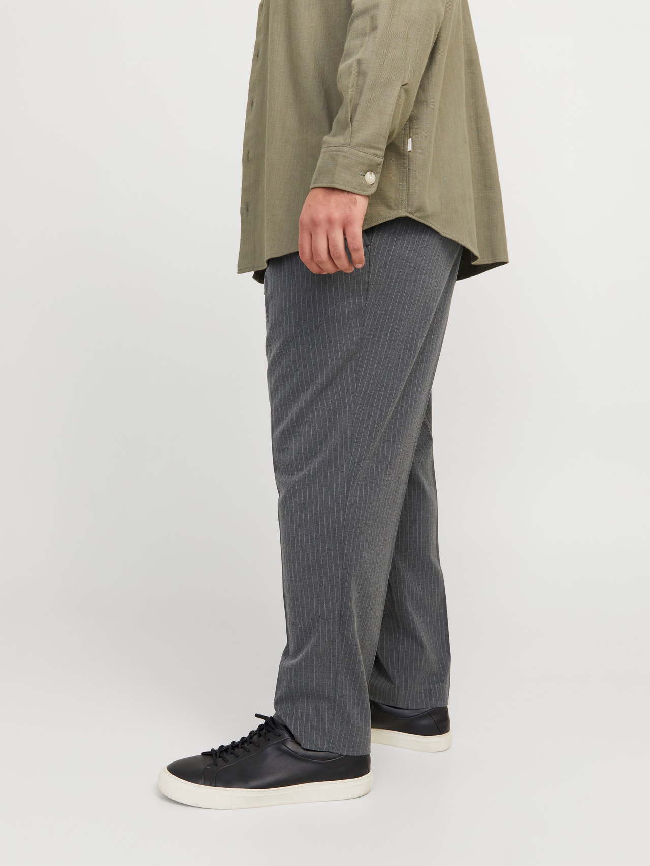 Jogging bottoms have a drawstring and elasticated waistband, which makes them super comfortable. They come in all types of fabrics and fittings. Woven fabric is a strong and durable material that does not stretch like knitted fabrics. Plus styles are designed to fit plus-size bodies. - Product Type : Loose-fit pants - Closing : Zip fly fastening - Pockets : Back pockets, Front pockets - Waist : Mid rise - Leg details : Fold-up hems - Body Type : Plus - Fit : Loose fit with a high rise, loose thigh, knee, and leg opening