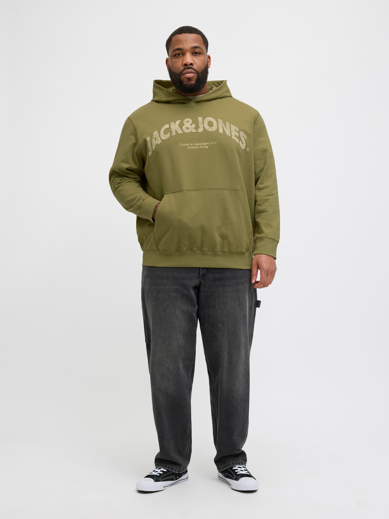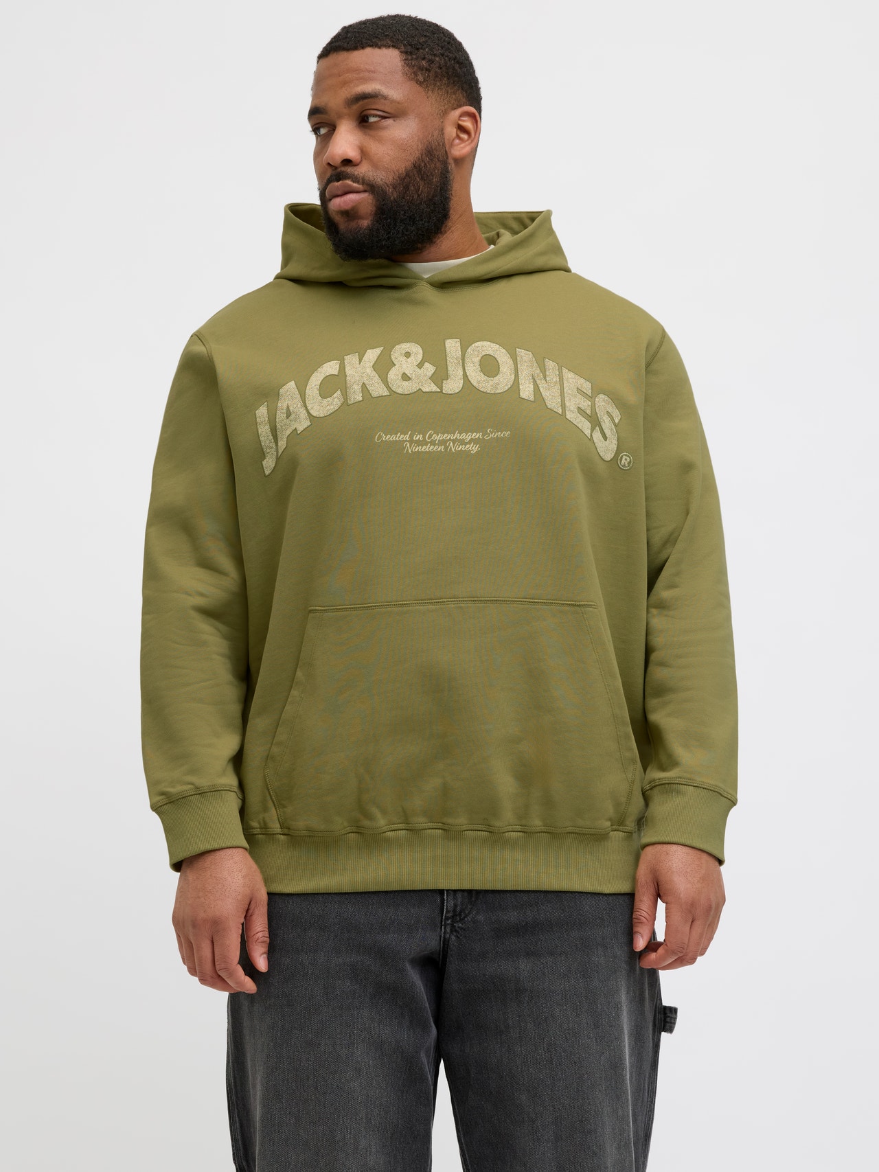 No wardrobe is complete without a few dependable staples like sweats. Brushed fabric with a soft finish on the inside. Lightly brushed fabrics are defined by the inside of the fabric having a slightly hairy texture and a soft feel. Plus styles are designed to fit plus-size bodies. - Product Type : Hoodie - Neck : Hoodie - Sleeve : Long sleeves - Sleeves : Set in sleeves - Cuffs : Ribbed cuffs - Pockets : Kangaroo pocket - Lining : Body fabric inside hood - Print : Rubber print for a soft feel - Body Type : Plus - Fit : Relaxed Fit