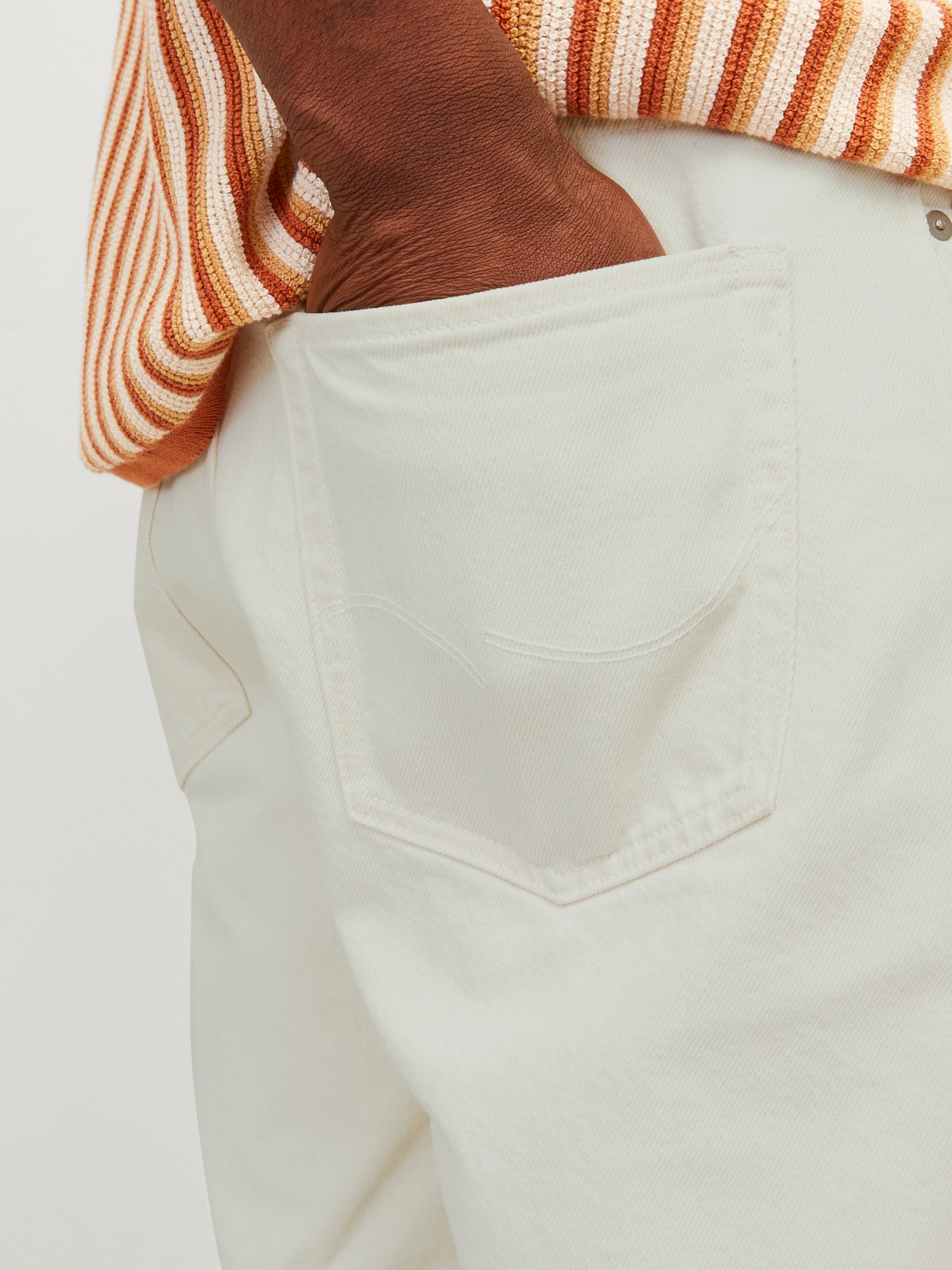 Stiv denim betyr at den er laget av 100 % bomull. Ingen tilsatt stretch. Dette er den tradisjonelle måten å lage denim på, hvilket gir en klassisk look og følelse.