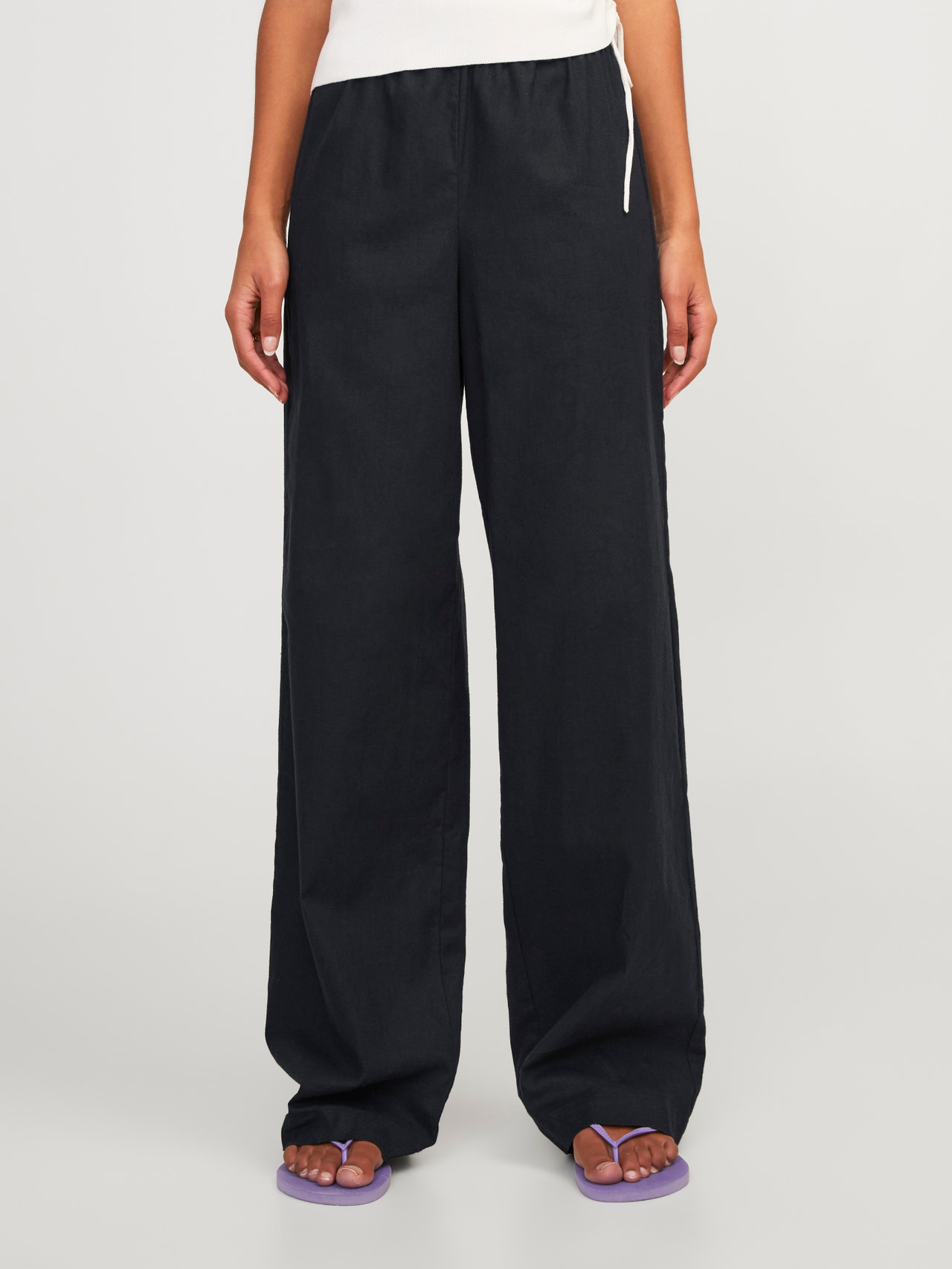 - 64% Lin, 35% Bomull, 1% Elastan