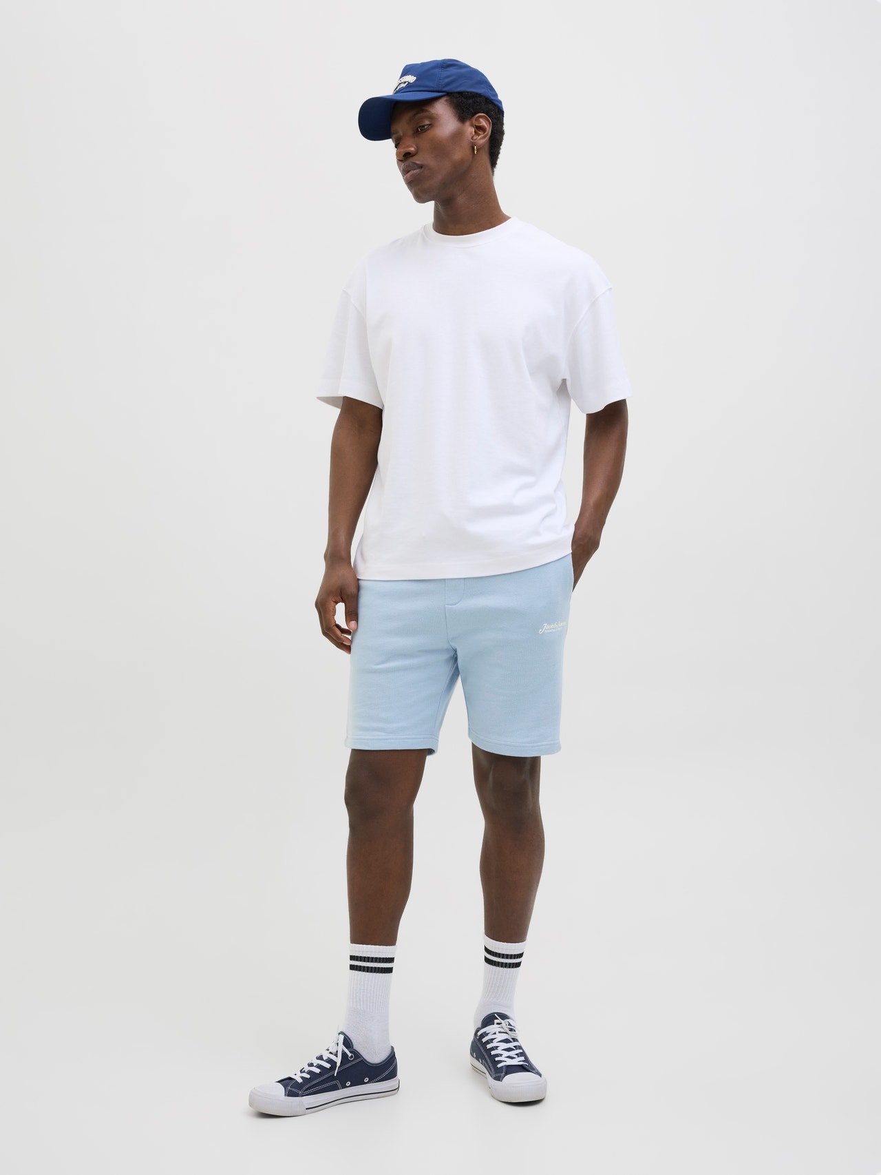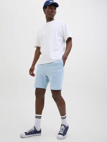 Joggeshorts har snøring og elastisk linning, noe som gjør dem superkomfortable. De kommer i alle typer stoffer og passformer. Flosset sweatstoff har en omvendt løkkestruktur på baksiden, noe som gjør det fukttransporterende. - Produkttype : Shorts med normal passform - Lukking : Imitert gylf - Lommer : Forlommer - Detaljer : Snøring i midjen, Elastisk linning - Passform : Normal passform med middels høyt snitt, normale lår og normale benåpninger