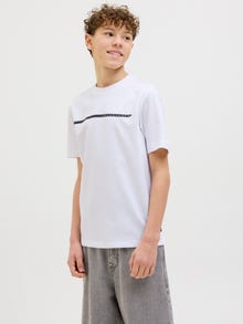 Det blir ikke enklere enn en T-skjorte. Du kan bruke den med alt fra garderoben. Børstet jersey er stretchy og har en myk følelse som er perfekt til hverdagsbruk. Oppdag den kule verdenen til JACK & JONES Junior, hvor mote blir virkelighet med et utbrudd av ungdommelig energi og livlig sjarm. Våre kolleksjoner er en blanding av freshe, trendy og kule design skreddersydd for gutter i alderen 3–16 år. Fordyp deg i komfortable styles av høy kvalitet som fremhever guttemote. Fra kule passformer til moderne stil, JACK & JONES Junior redefinerer mote for alderen 3–16 og omfavner voksenånden i hvert antrekk.. - Produkttype : T-skjorte - Hals : Crew neck - Erme : Korte ermer - Mønster : Gummitrykk for en myk følelse - Passform : Regular Fit