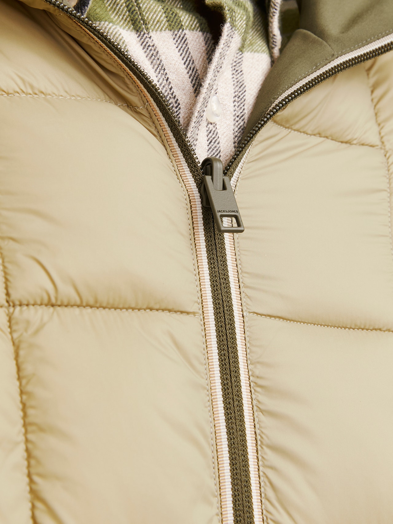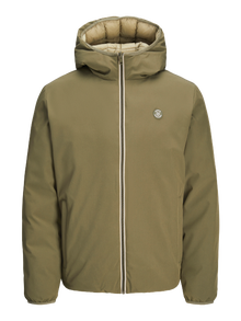 Ga voor een casual look met een kwaliteitsjas voor elke dag. - Producttype : Puffer jacket - Functionaliteit : Winddicht - Hals : Capuchon - Mouw : Lange mouwen - Manchetten : Manchet met elastiek - Sluiting : Ritssluiting - Zakken : Voorzakken - Lengte/maat : Kort - Opvulling : Vulling van imitatiedons voor lichtheid en warmte - Details : Omkeerbaar voor twee verschillende looks