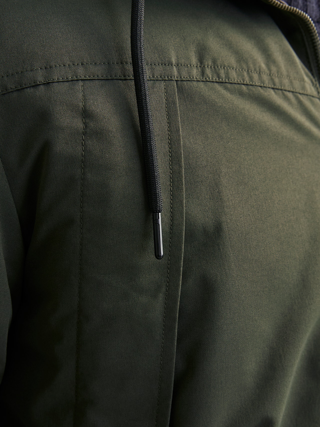 - Hals : Capuchon met verstelbaar koord