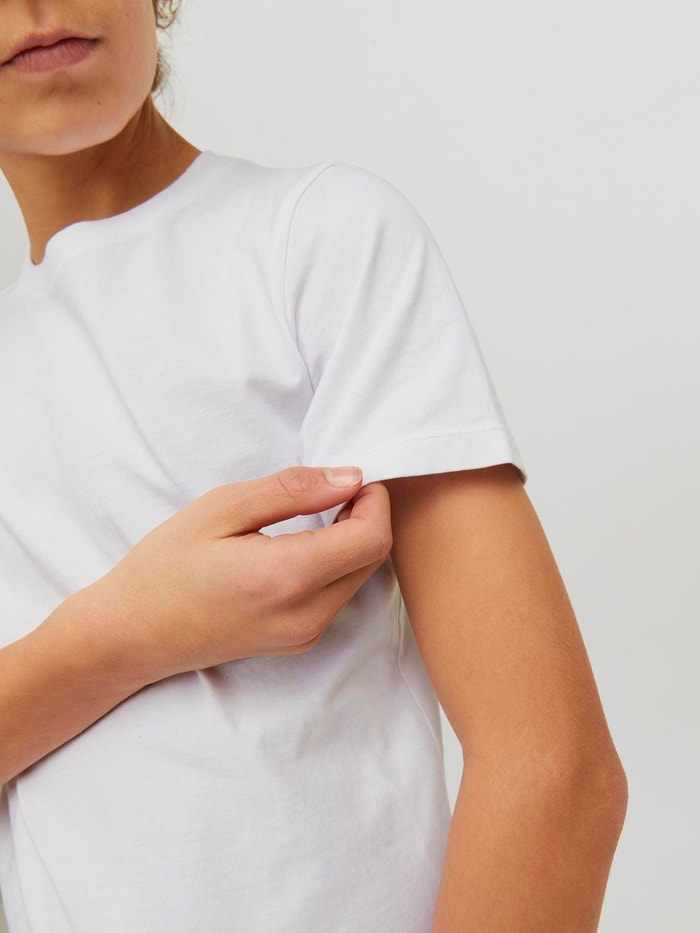 Dit basic T-shirt is een outfit-essential die prima past bij jeans, shorts en andere broeken.