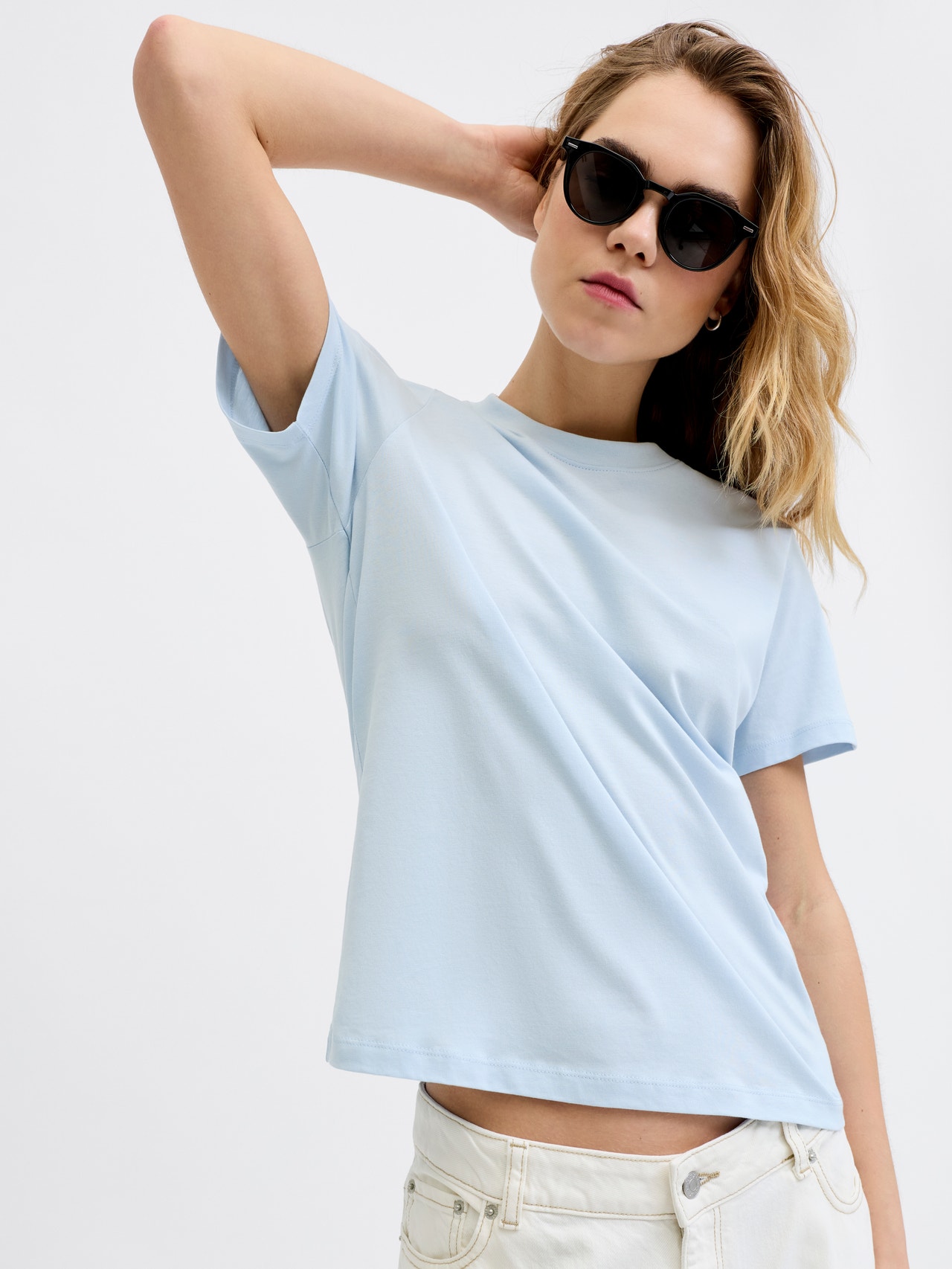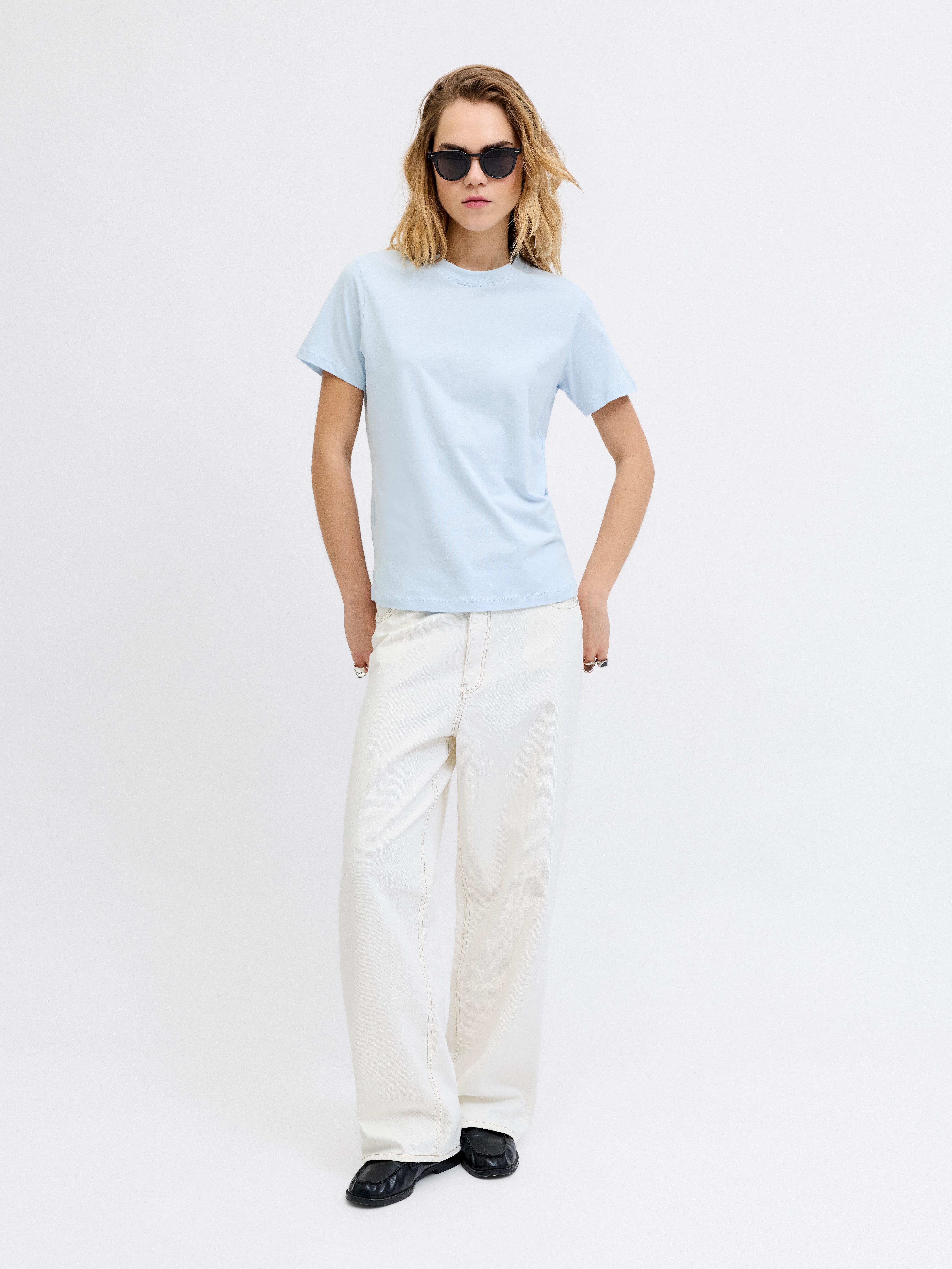 Dit basic T-shirt is een essential in je garderobe die goed past bij jeans, shorts en broeken.