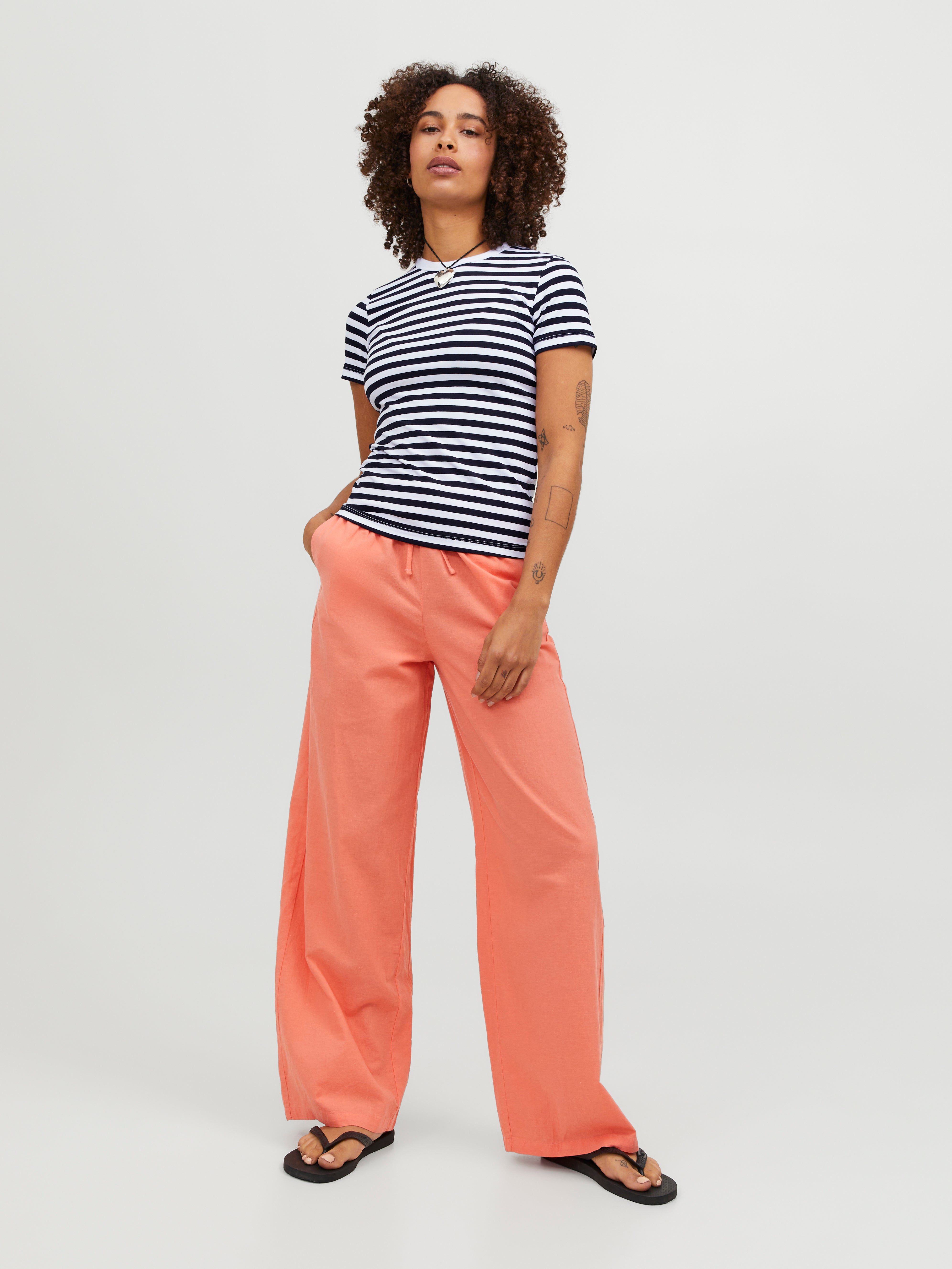 Dit basic T-shirt is een essential in je garderobe die goed past bij jeans, shorts en broeken.