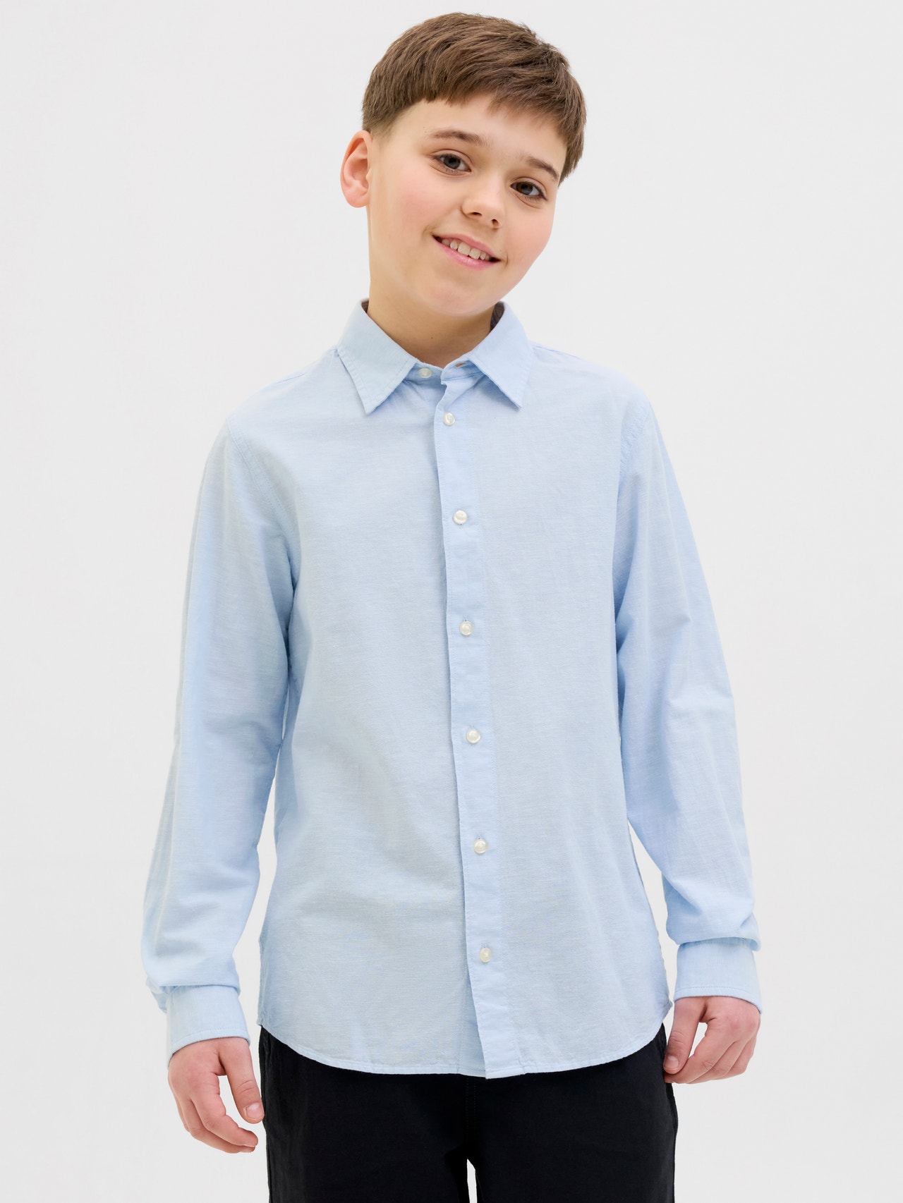 Geef je basics een upgrade met een tijdloos shirt dat perfect is voor elke dag. Popeline is een sterke stof met een mooie glans wat zorgt voor een unieke look. Duik in de wereld van JACK & JONES Junior. Hier vind je de tofste items om je outfit helemaal tot leven te laten komen. In onze collecties vind je altijd een mix van designs die zijn gemaakt voor jongens van 3-16 jaar. Laat je inspireren door een selectie van items die niet alleen tof zijn, maar ook waanzinnig comfortabel. Van stoere outfits tot praktische basics, bij JACK & JONES Junior vind je de ultieme outfits voor jongens vanaf 3 jaar.. - Producttype : Overhemd - Hals : Overhemd kraag - Mouw : Lange mouwen - Sluiting : Knoopsluiting - Lichaamstype : Junior - Pasvorm : Regular fit