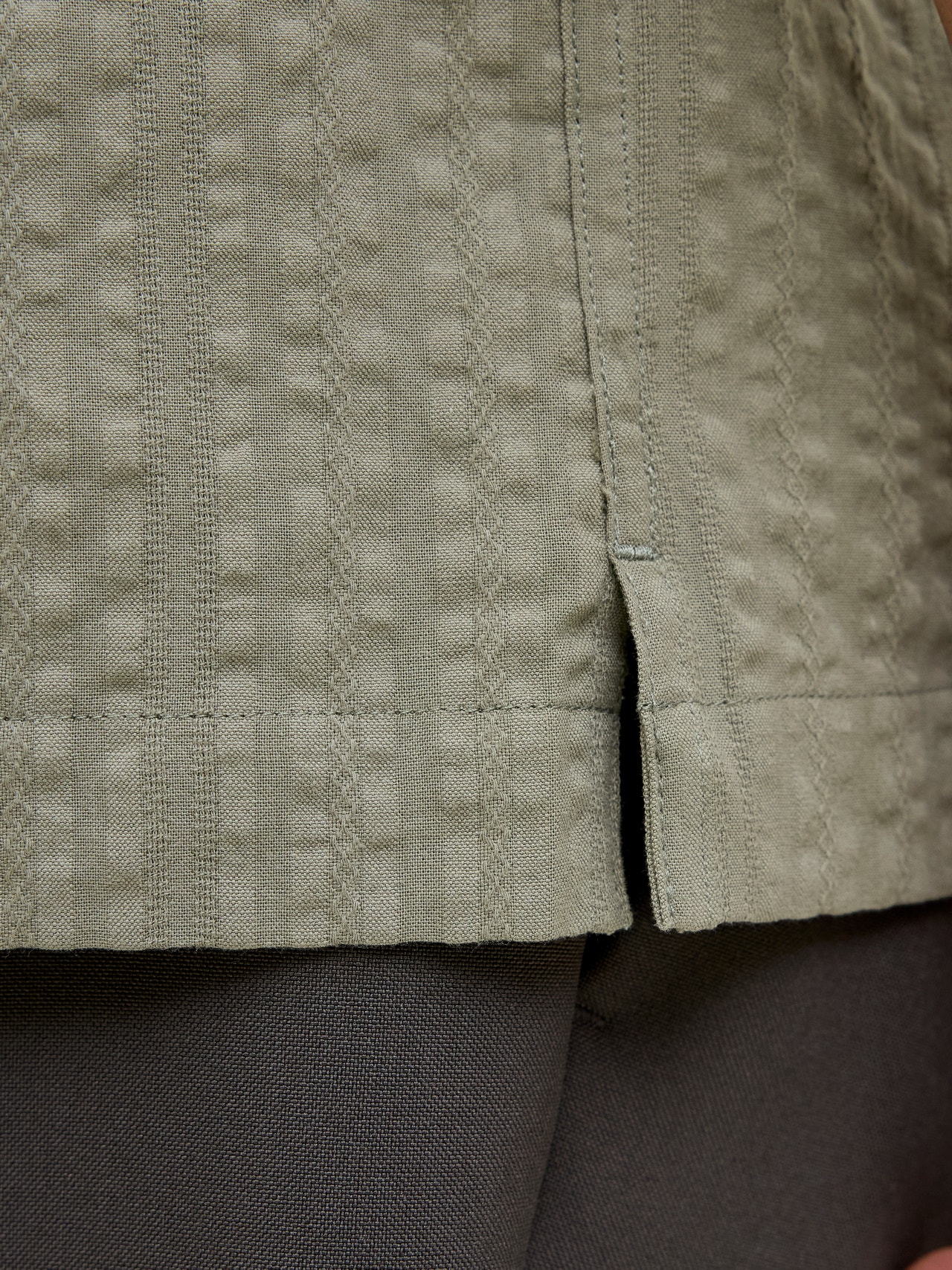 Seersucker is een frisse, ademende stof met een gebobbeld uiterlijk.
