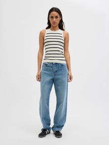 Jest to rodzaj luźnej dzianiny, którą możesz nosić w weekend z dżinsami, a także na koszulę i spodnie w biurze. Dzianina płaska to dzianina zapewniająca wygodę i elastyczność. - Rodzaj produktu : Dzianinowy top - Szyja : Okrągły dekolt - Rękaw : Bez rękawów - Krój : Dopasowany krój