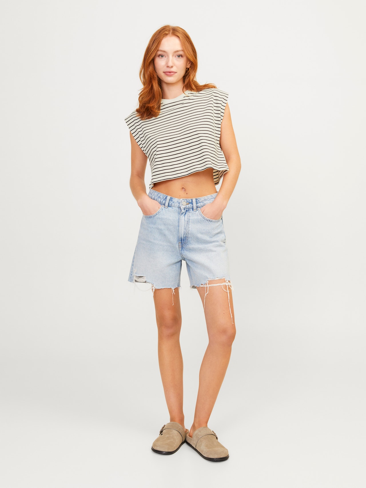 Ten prosty t-shirt to podstawa każdej garderoby, gdyż pasuje do jeansów, szortów i spodni.