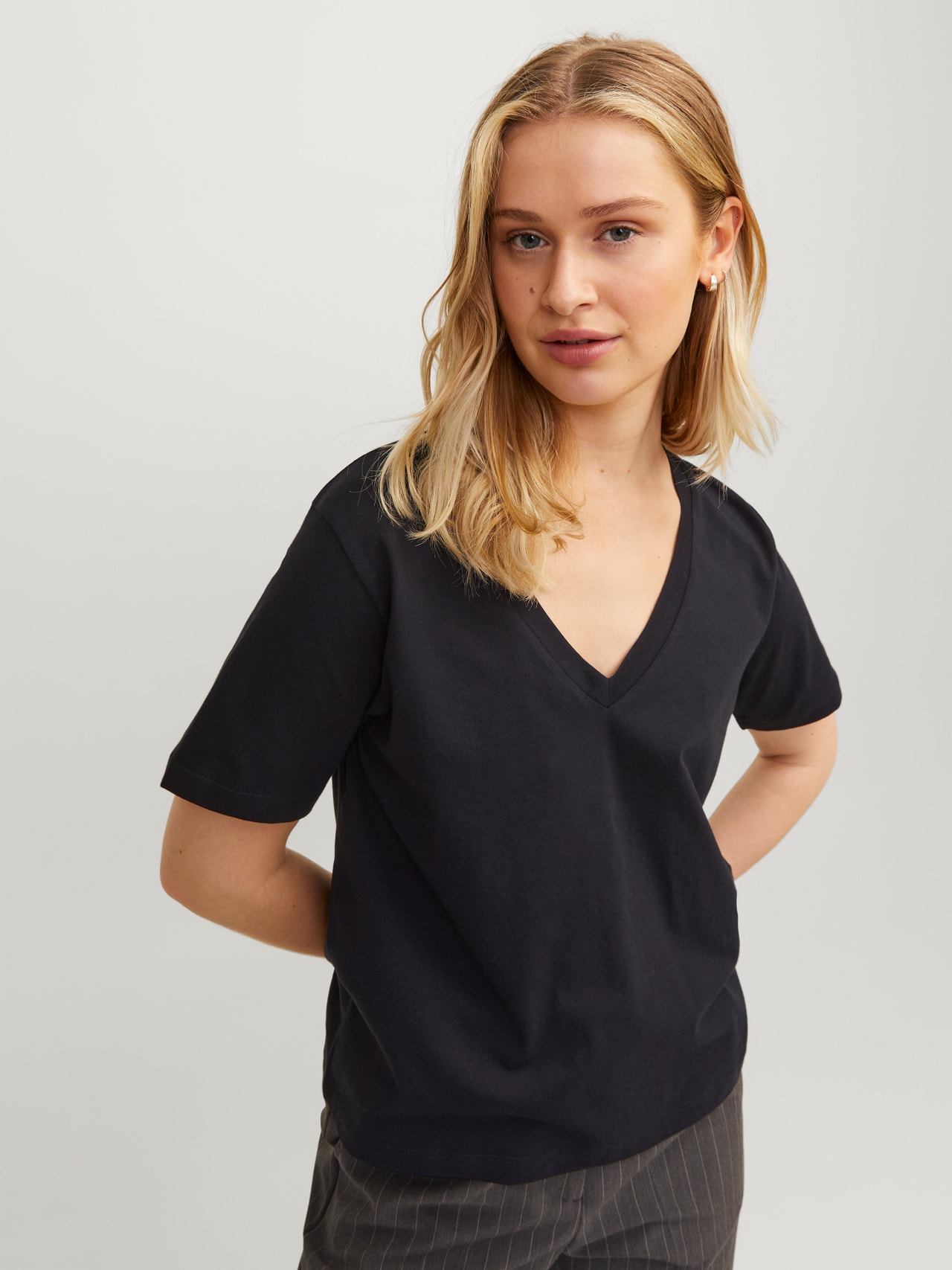Ta podstawowa koszulka to niezbędny element garderoby, który dobrze komponuje się z dżinsami, szortami i spodniami.