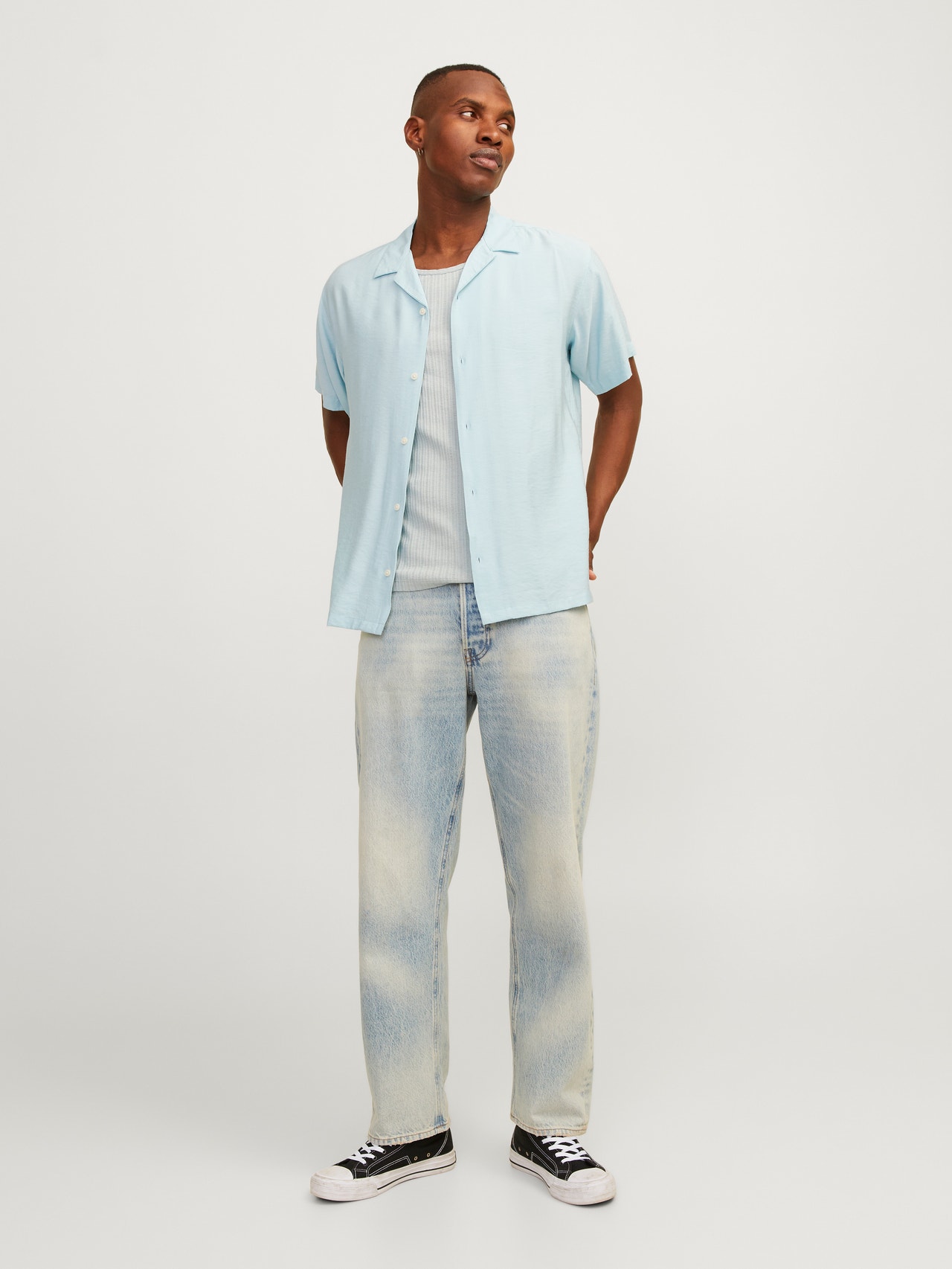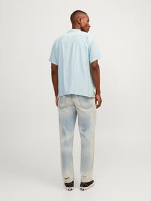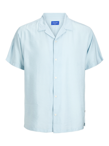 Lekka i zwiewna koszula do modnych letnich stylizacji. Twill jest trwałą tkaniną charakteryzującą się wzorem układającym się w literę V lub W o klasycznym wyglądzie. - Rodzaj produktu : Koszula - Szyja : Kołnierz typu resort - Rękaw : Krótkie rękawy - Zamknięcie : Zapięcie na guzik - Krój : Krój swobodny