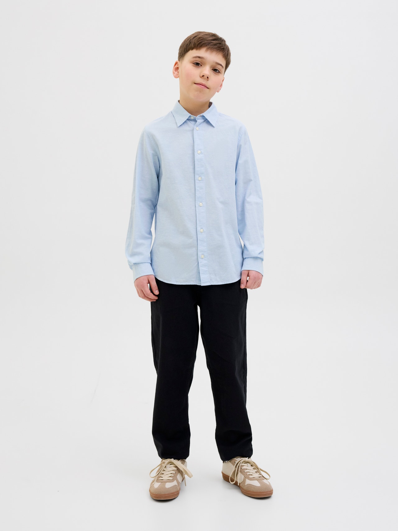 Odśwież swój podstawowy zestaw ubrań i kup wysokiej jakości koszulę idealną do noszenia na co dzień. Popelina to mocna tkanina o lustrzanym połysku, tworzącym unikalny efekt. Odkryj stylowy świat Jack and Jones Junior, w którym moda ożywa dzięki młodzieńczej energii i urokowi. Nasze kolekcje to mieszanka nowoczesnych, modnych i fajnych wzorów dla chłopców w wieku 3-16 lat. Odkryj wysokiej jakości, wygodne stylizacje, które podkreślają modę chłopięcą. Od fajnych krojów po współczesny styl, Jack and Jones Junior na nowo definiuje modę dla chłopców w wieku od 3 do 16 lat i wprowadza ducha dorosłości do każdego stroju.. - Rodzaj produktu : Koszula - Szyja : Kołnierz koszulowy - Rękaw : Długie rękawy - Zamknięcie : Zapięcie na guzik - Rodzaj Sylwetki : Junior - Krój : Krój regularny