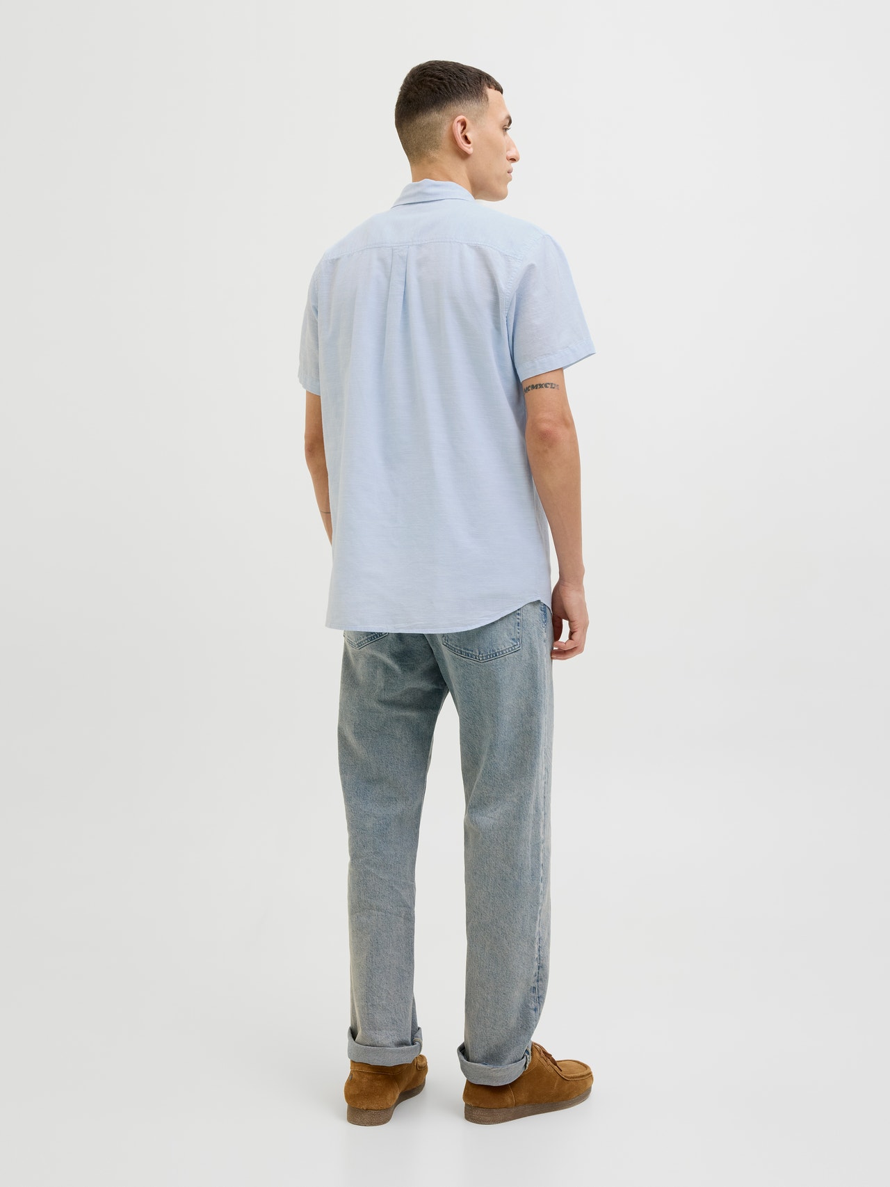 - Materiał dominujący: 63% Bawełna, 20% Wtórna bawełna, 17% Len