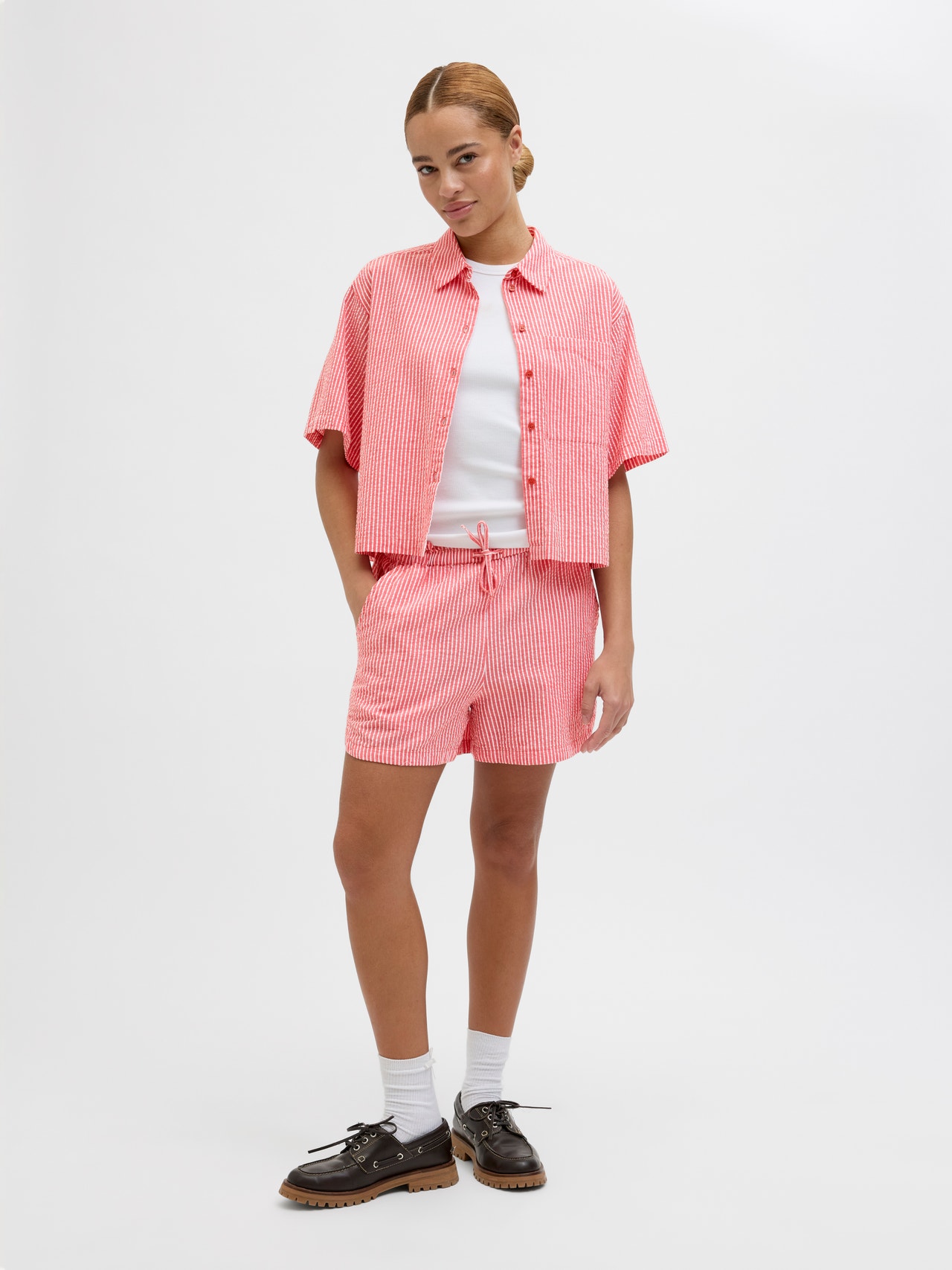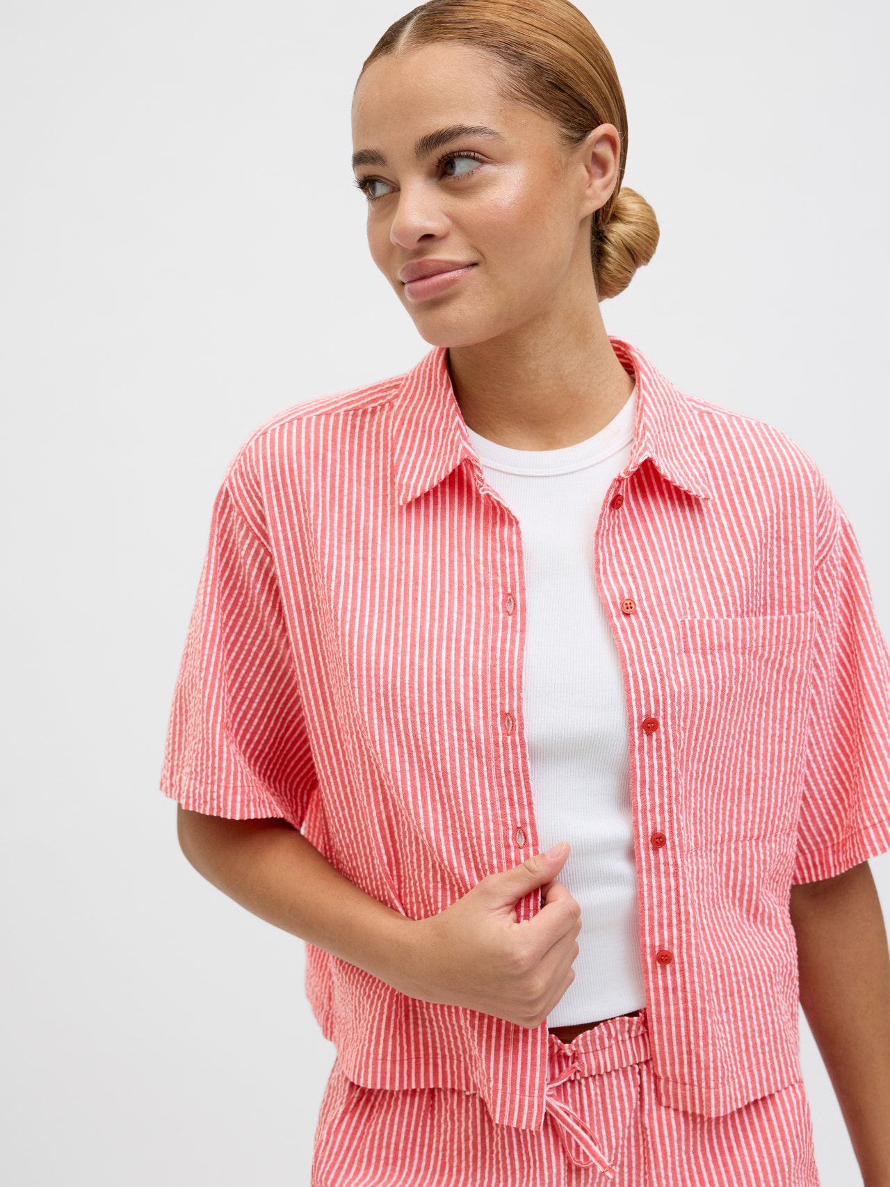 Materiał gofrowany jest lekką tkaniną o pogniecionym wyglądzie, oddychającą i chłodzącą.
