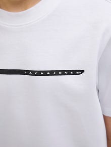 Nie ma nic prostszego, niż t-shirt. Możesz nosić go do wszystkiego, co masz w szafie. Jersey czesany łatwo się rozciąga i posiada miękkie wykończenie, idealne do noszenia na co dzień. Odkryj stylowy świat Jack and Jones Junior, w którym moda ożywa dzięki młodzieńczej energii i urokowi. Nasze kolekcje to mieszanka nowoczesnych, modnych i fajnych wzorów dla chłopców w wieku 3-16 lat. Odkryj wysokiej jakości, wygodne stylizacje, które podkreślają modę chłopięcą. Od fajnych krojów po współczesny styl, Jack and Jones Junior na nowo definiuje modę dla chłopców w wieku od 3 do 16 lat i wprowadza ducha dorosłości do każdego stroju.. - Rodzaj produktu : T-shirt - Szyja : Okrągły dekolt - Rękaw : Krótkie rękawy - Wzór : Nadruk gumowy jest miękki w dotyku - Krój : Krój regularny