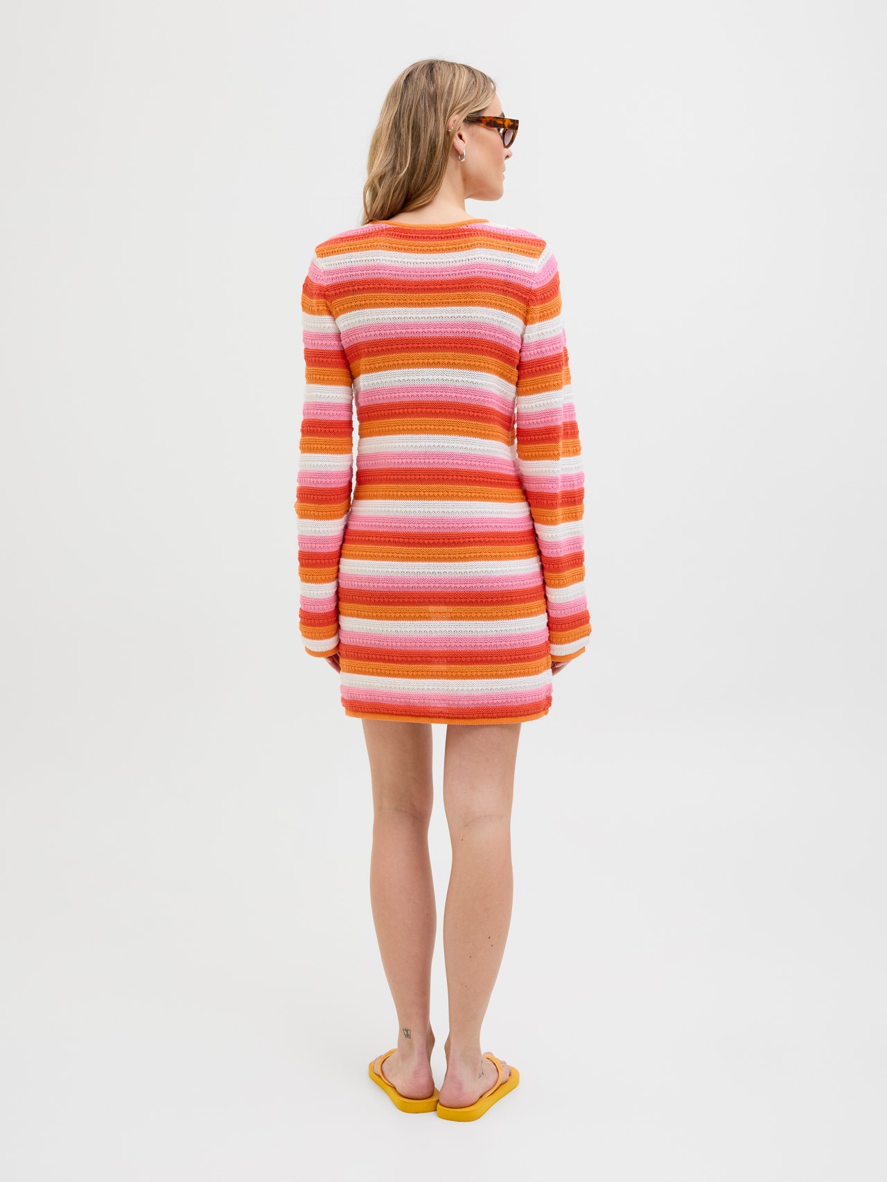 Przygotuj się na lato w lekkim stylu plażowym, pełnym świeżości, zabawy i koloru. Płaska dzianina to dzianina zapewniająca komfort i elastyczność. - Rodzaj produktu : Sukienka dzianinowa - Szyja : Okrągły dekolt - Rękaw : Długie rękawy - Długość/rozmiar : Krótki - Krój : Krój regularny