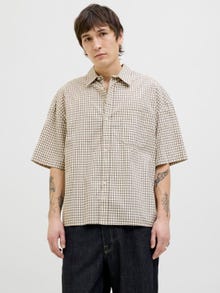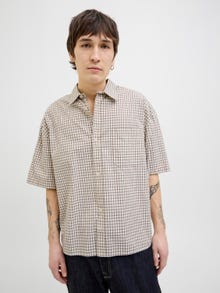 Odśwież swój podstawowy zestaw ubrań i kup wysokiej jakości koszulę idealną do noszenia na co dzień. Twill jest trwałą tkaniną charakteryzującą się wzorem układającym się w literę V lub W o klasycznym wyglądzie. - Rodzaj produktu : Koszula - Szyja : Kołnierz koszulowy - Rękaw : Krótkie rękawy - Zamknięcie : Zapięcie na guzik - Krój : Szeroki krój