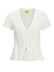 Jest to rodzaj swobodnej dzianiny, którą można nosić w weekend do jeansów lub na koszulę do spodni, gdy idziesz do biura. Dzianina strukturowana posiada delikatną fakturę, dającą jej ekskluzywny wygląd. - Rodzaj produktu : Dzianinowy top - Szyja : Dekolt w serek - Rękaw : Krótkie rękawy - Szczegóły : Pasek w talii - Krój : Krój super slim
