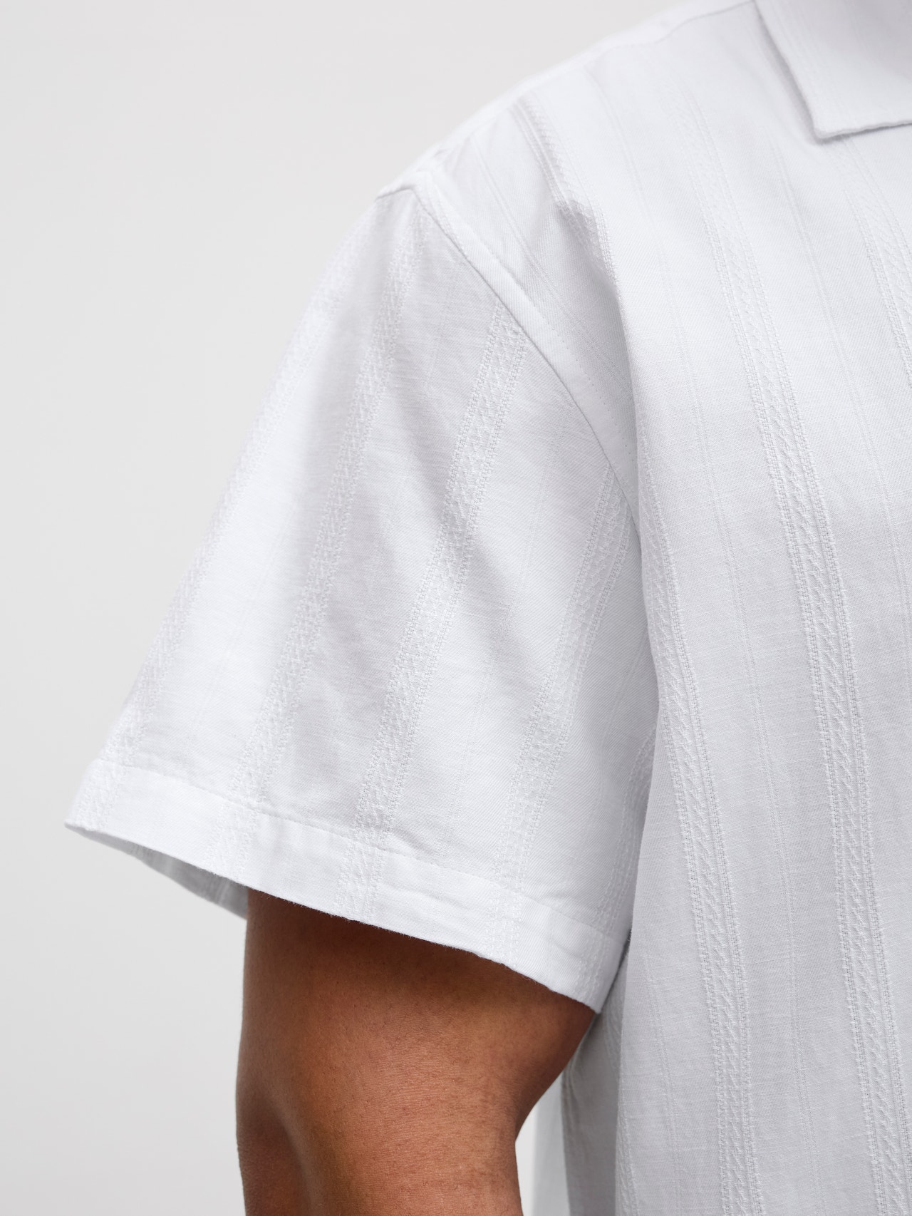 Materiał dobby posiada małe, geometryczne wzory, które nadają materiałowi eleganckiej tekstury.