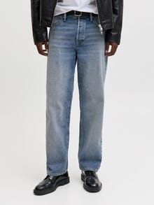 - Krój : Luźne dżinsy z wysokim stanem, luźne udo, luźne kolana, luźne rozcięcie nogawek