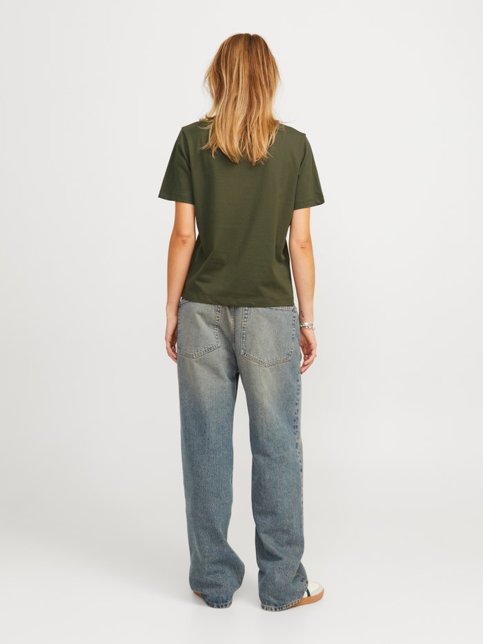 Esta t-shirt básica é um guarda-roupa essencial que funciona bem com jeans, calções e calças.